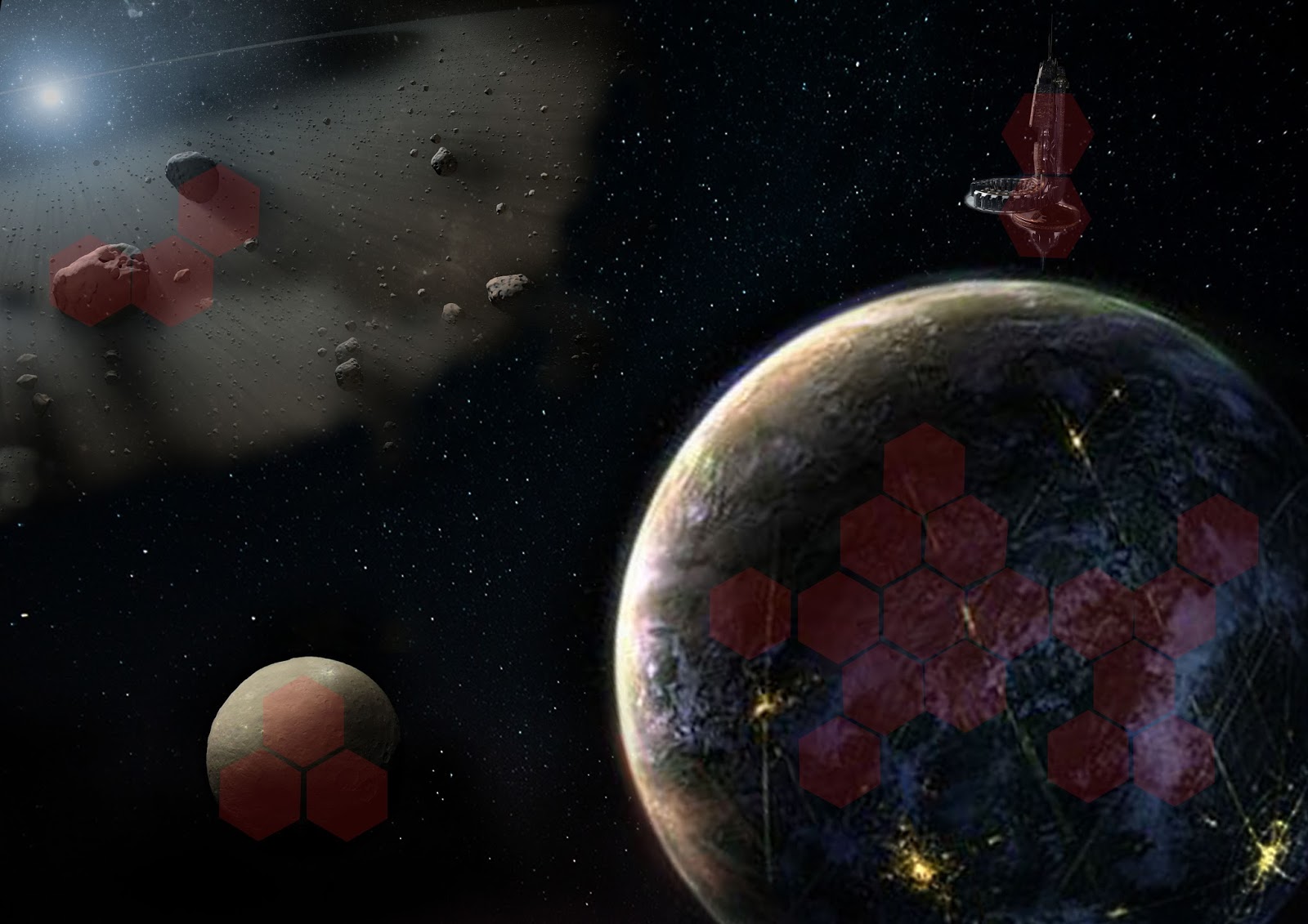 Here is a map I put together using different pictures I have found on the net, representing the planet and its vicinity.