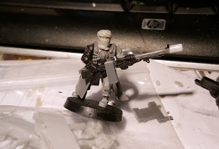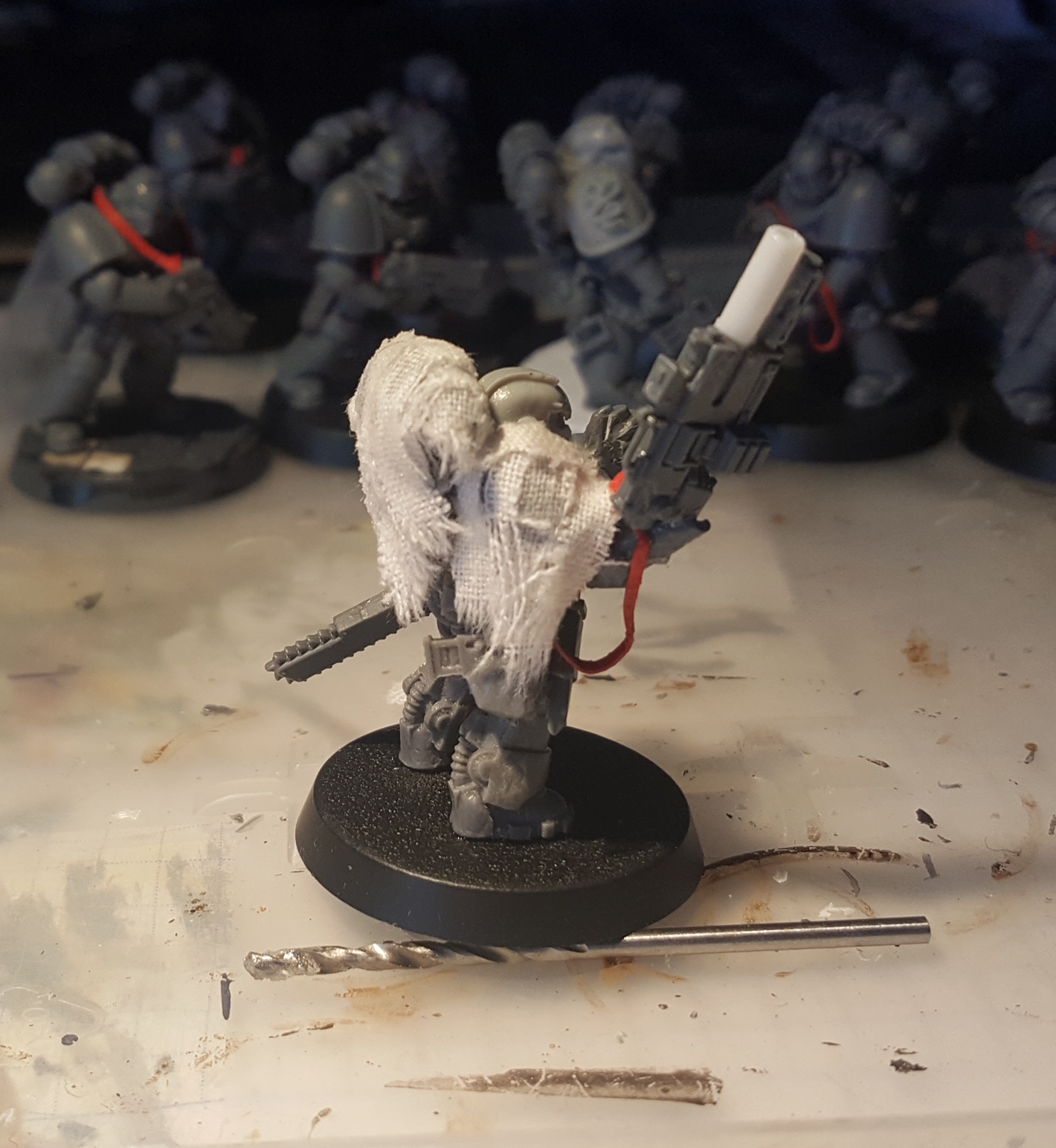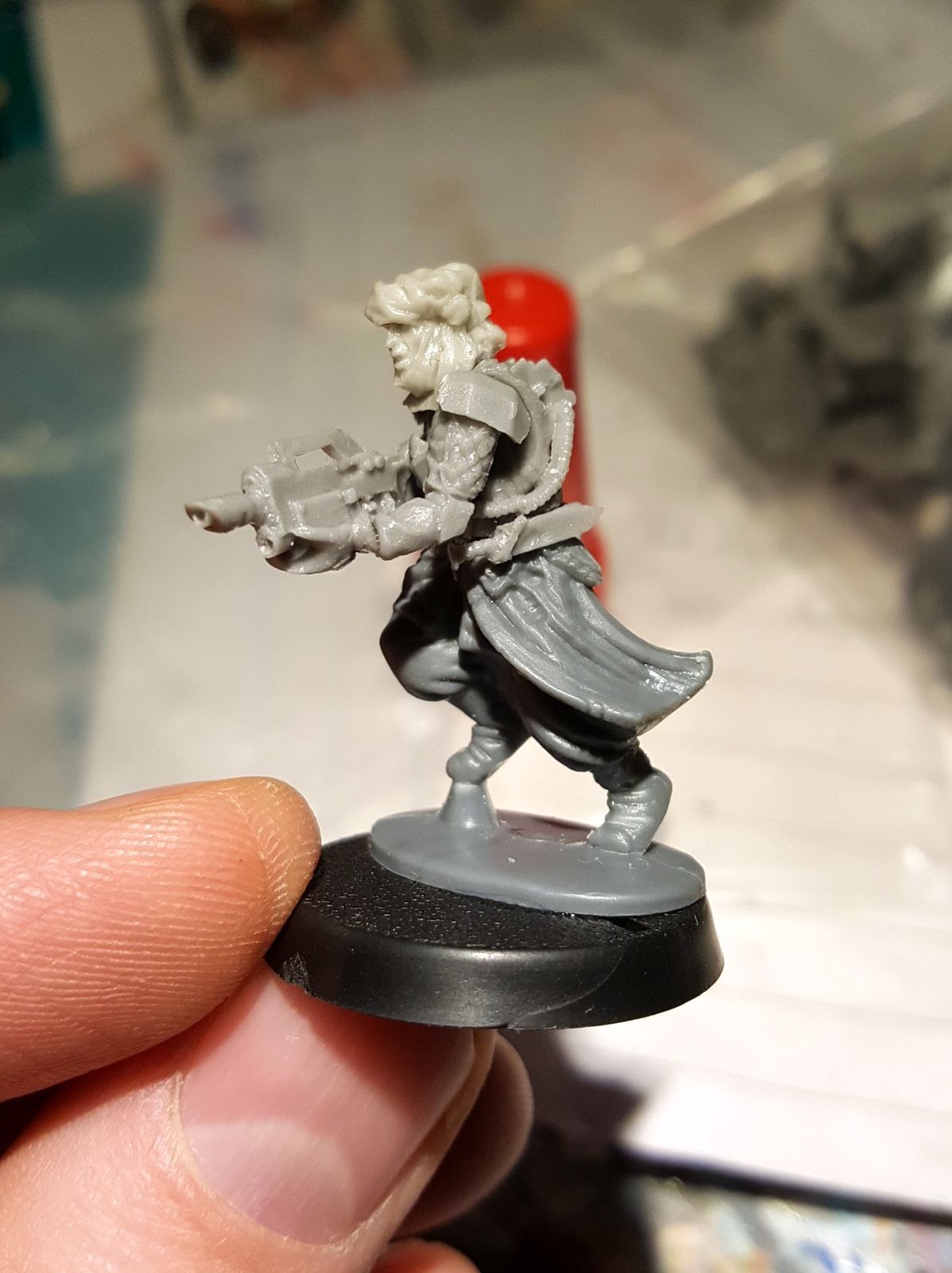 Here follows some pictures of use placing the top part of an excavator on a second hand Leman Russ I had laying around.
