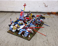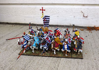 Next up for my Crusading French force is a small unit of Serjeants bearing the colours of the House of Lusignan http://wappenwiki.org/index.php/House_of_Lusignan