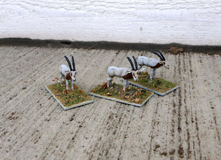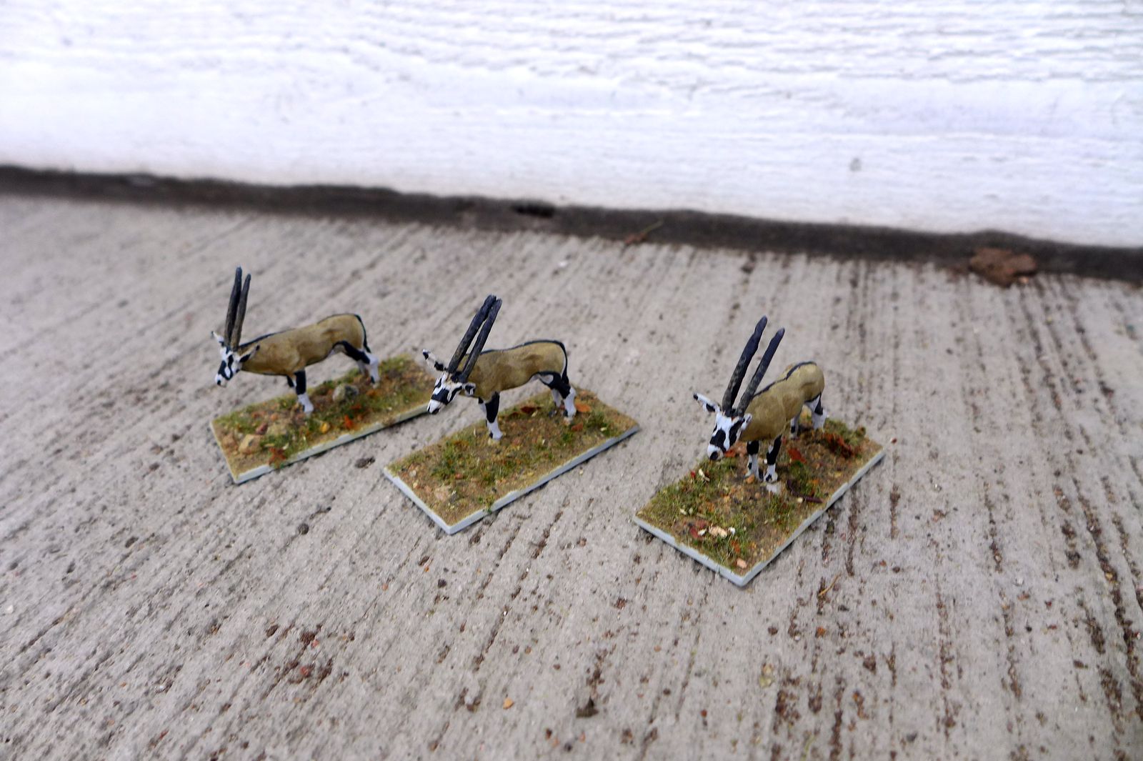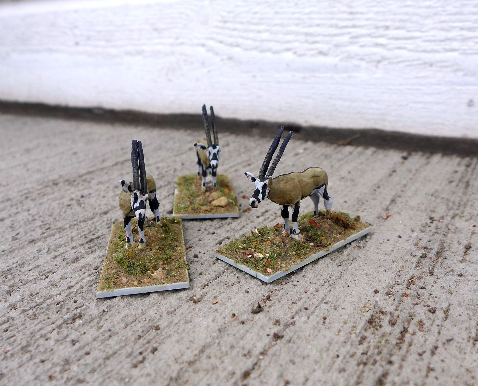 The miniatures are the same as the previous post on the Gemsbok but I bent the horns a litle and painted them differently.