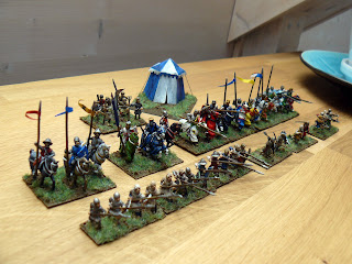 The Camp for the feudal French was made according to the the Wargames Illustrated medieval tent article.