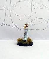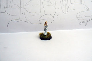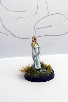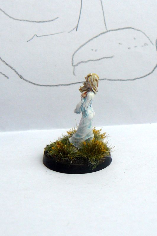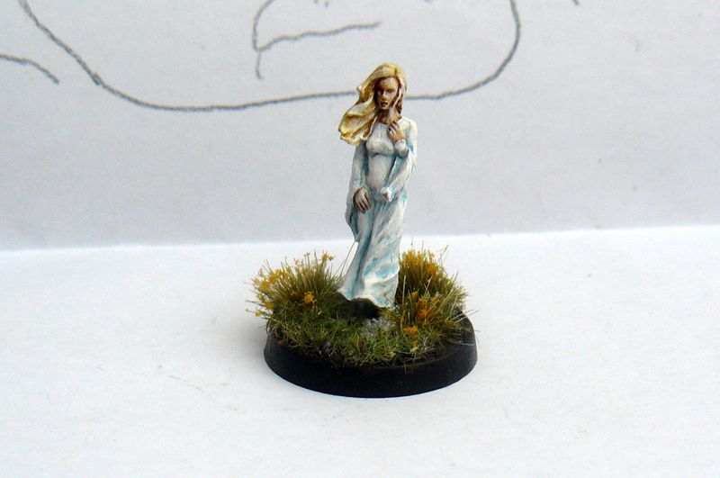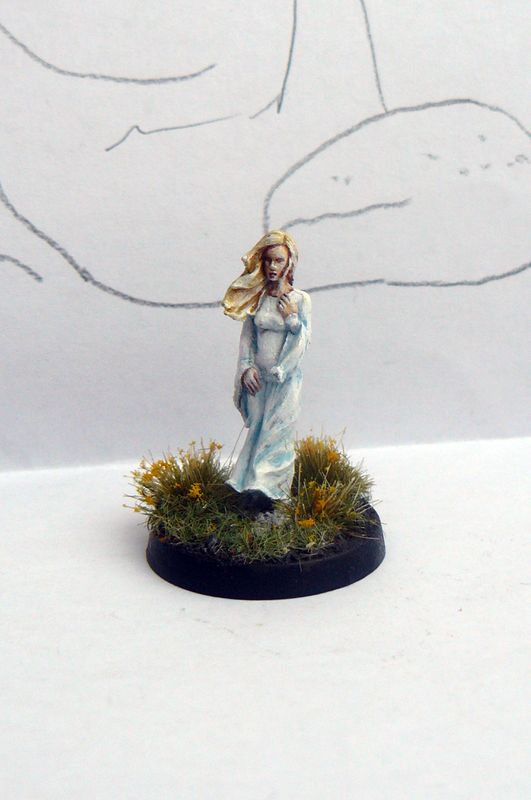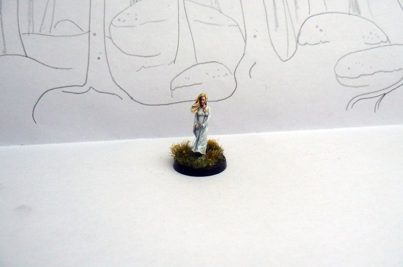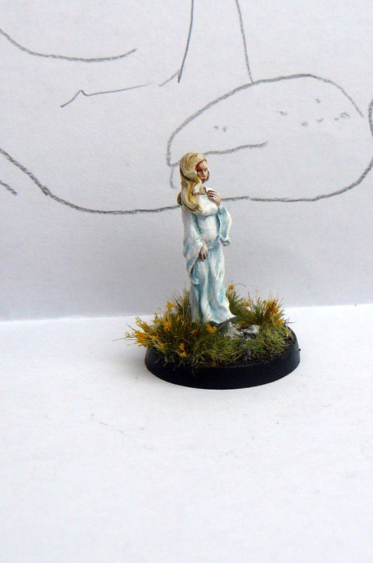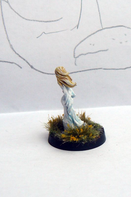 For the flock on the base I used Swamp tuff and then added some of my own "magical flock" (Tomogui, I know you want some...). I also added some yellow "flowers" to make it look like the flower that her name comes from in Swedish. http://en.wikipedia.org/wiki/Carex_cespitosa