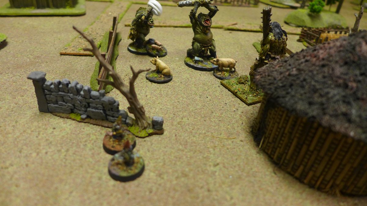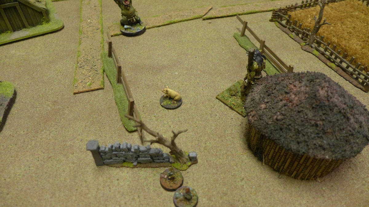 After demolishing the pigpen some infighting starts over the pigs and one player decides to wack a troll istead and thus hindering him to get more points.