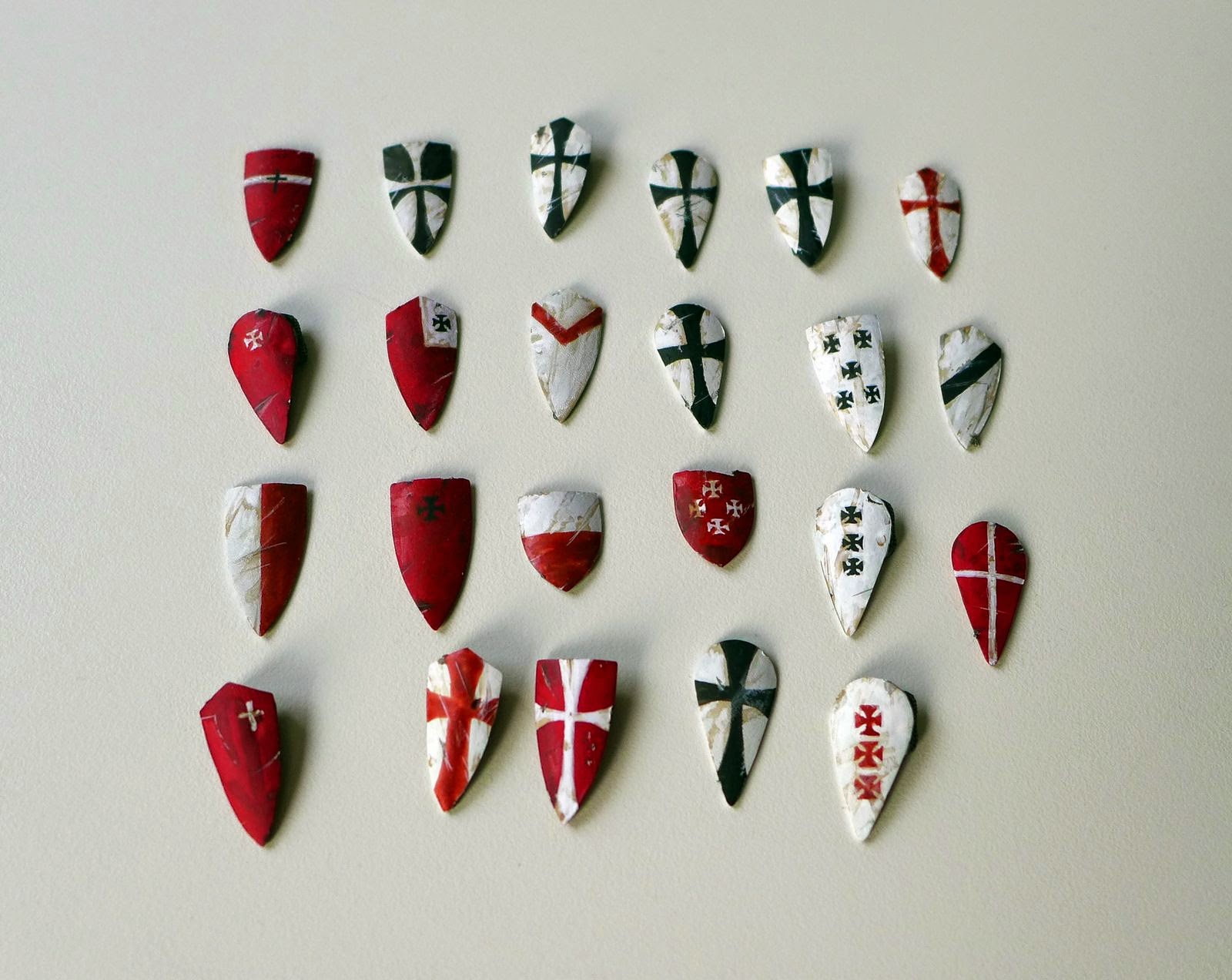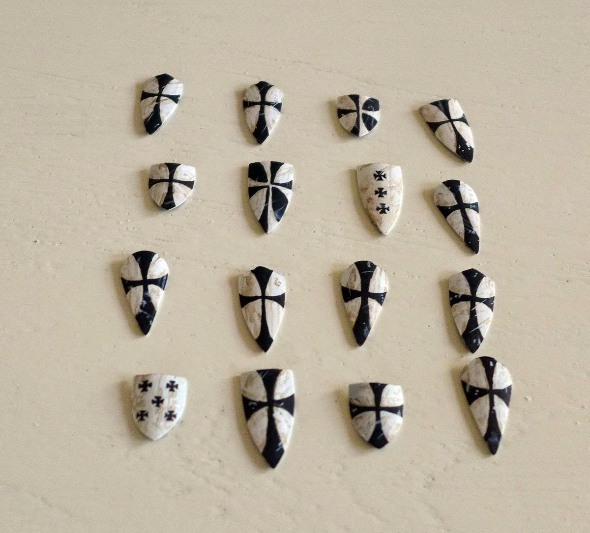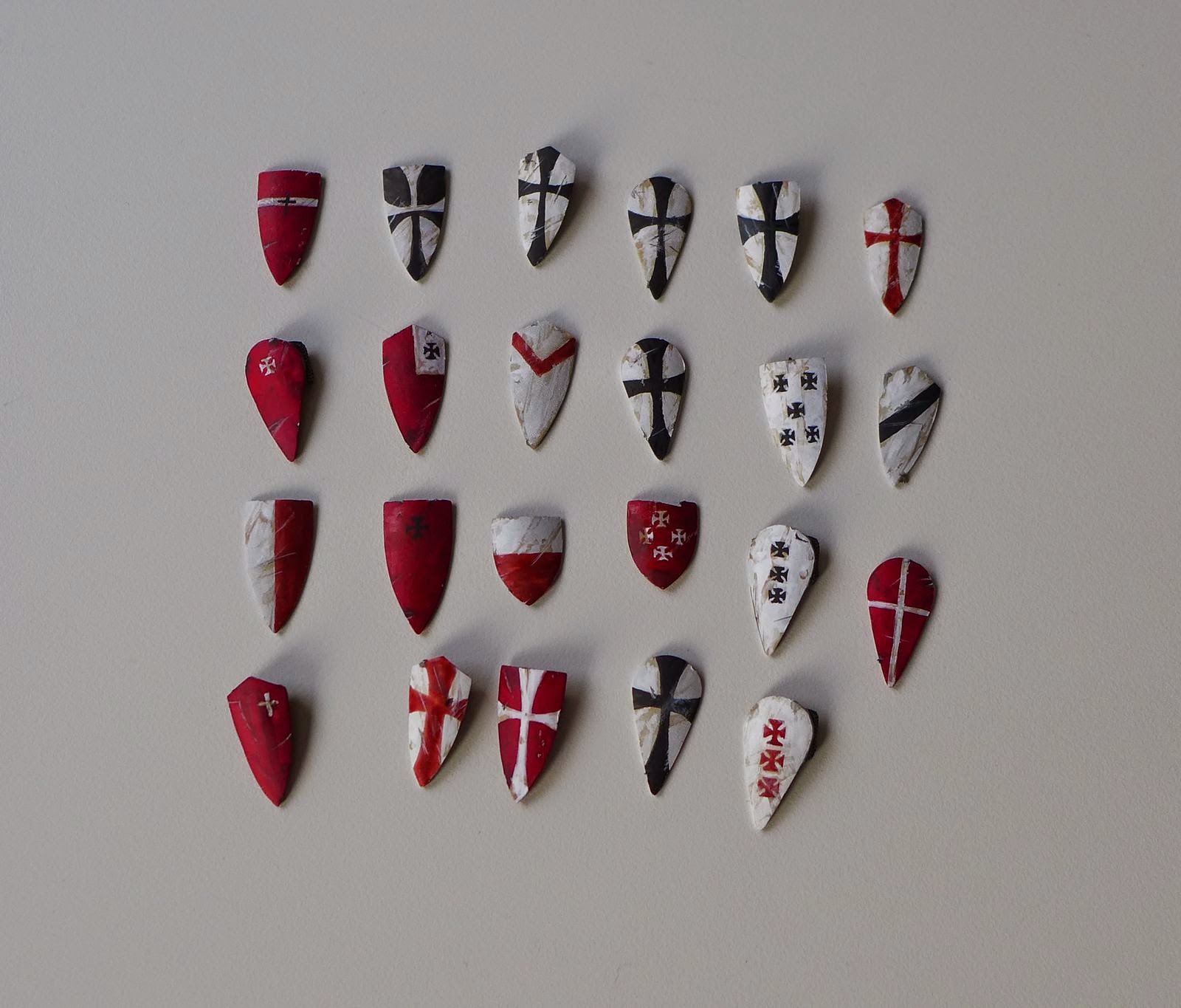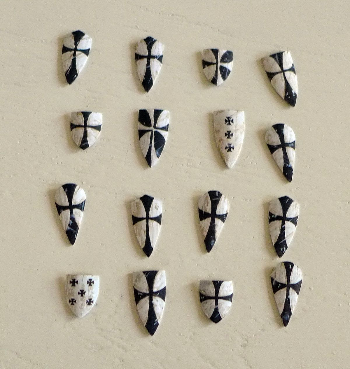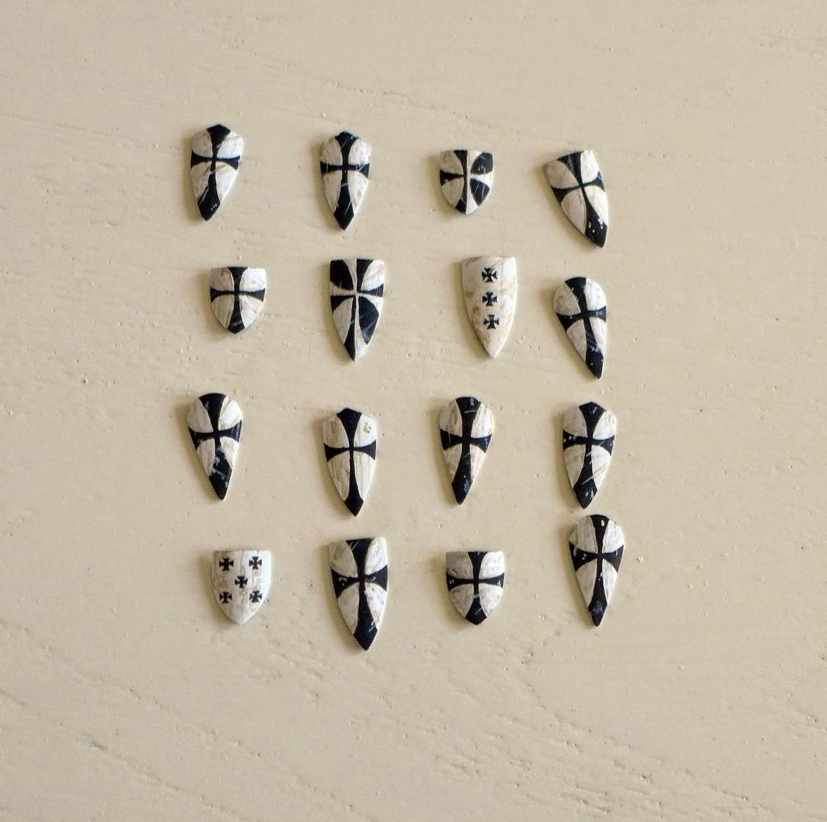 I painted these 16 shields for my friend Håkans County of Tripoli army, one of my opponents from our clubs Crusader project.