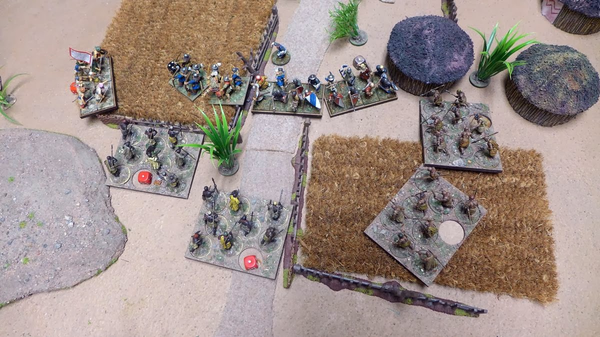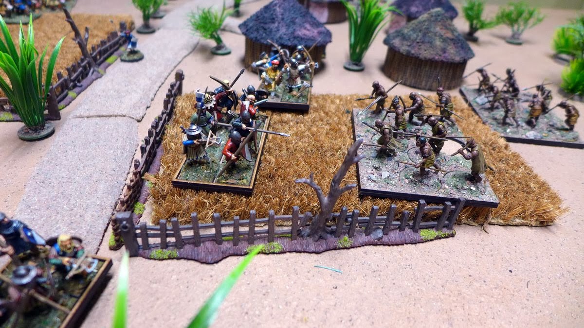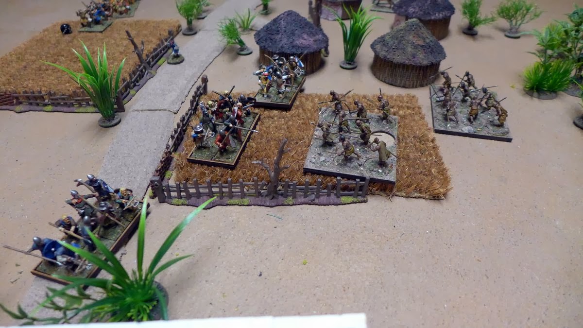 Spears and arrows are exchanged but to no real effect.