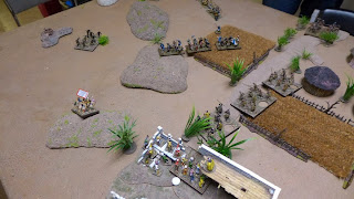 The game started with his whole army in reserve and the table was all to my picking. A very strange and quietly growing concern fell over the troops, were where the enemy ?