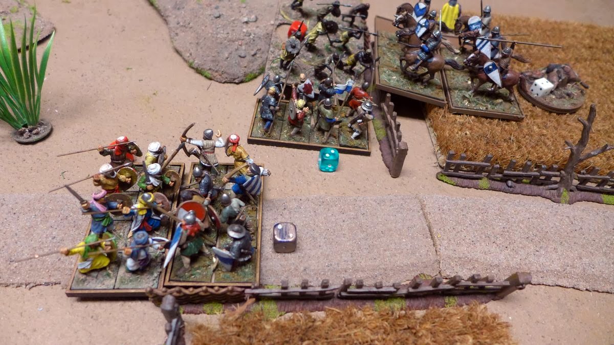 The crusaders tries to assault the skirmishers but they fail to catch them as they fall back.