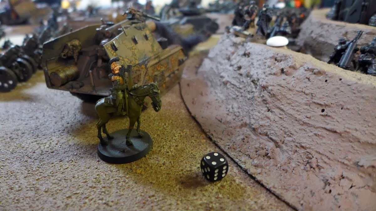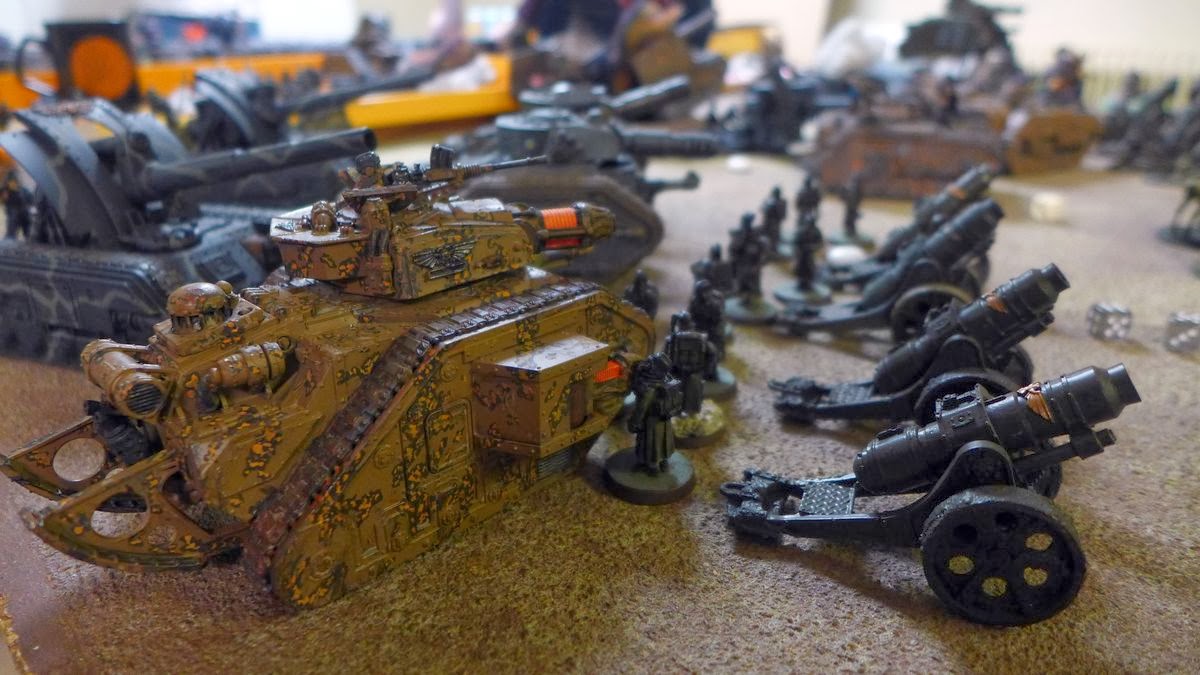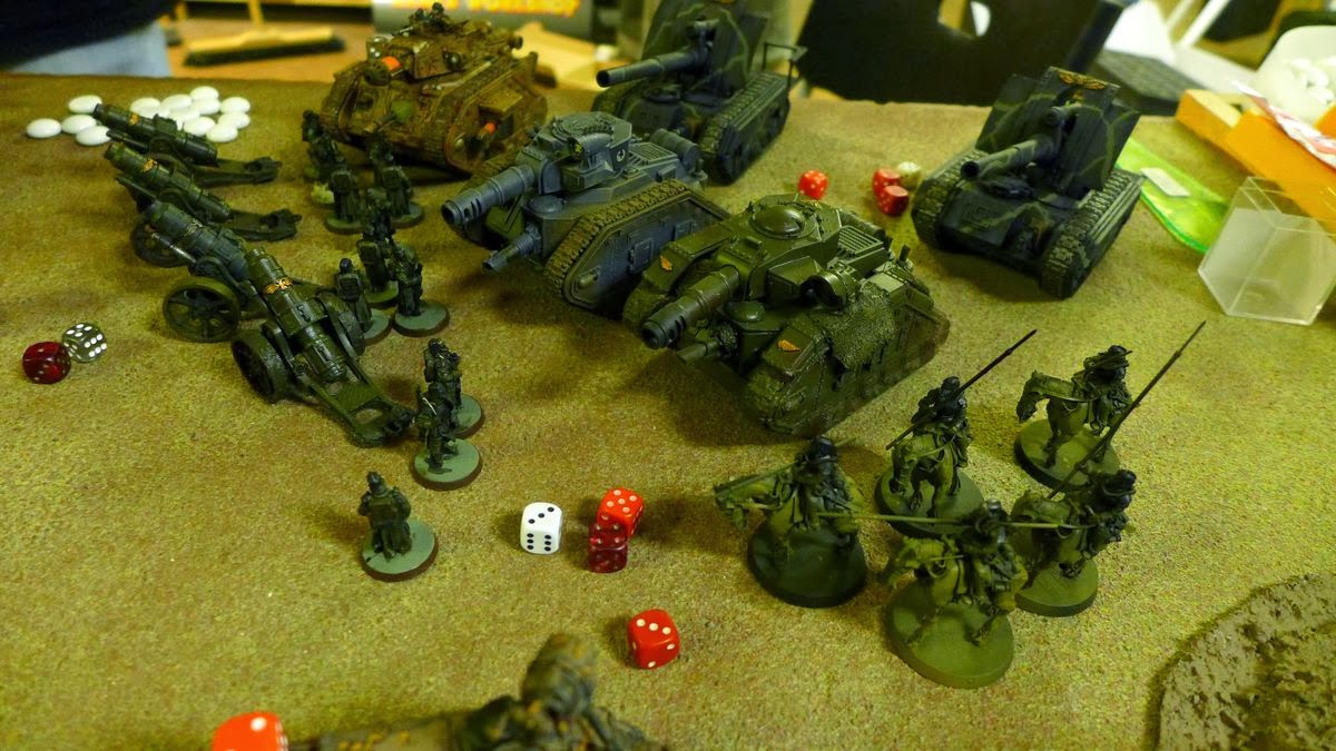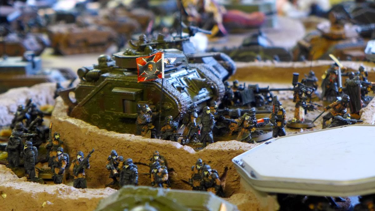 It looked as all the imperial players at the big gaming table where using mechanised or airborn guardsmen so almost all the boots on the grown manning the trenches where Death Korp guardsmen from my and Daniels collections.
