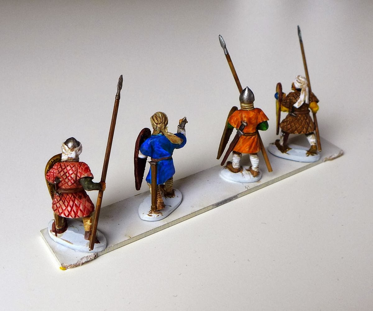 The miniatures are Conquest games Norman Infantry but two of them have new heads from Warlord Games ww2 Sikh heads http://store.warlordgames.com/collections/bolt-action-armoury/products/sikh-destroy-turbaned-figure-heads-24 , the other two have regular heads. With some added greenstuff and the right colour pallet I think this could work.