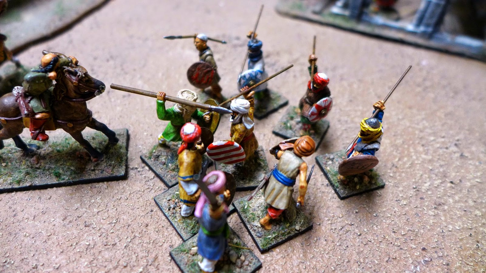 My small warband. My leader in pink turban commanding some warriors, some militias and two Turcomans horsearchers.