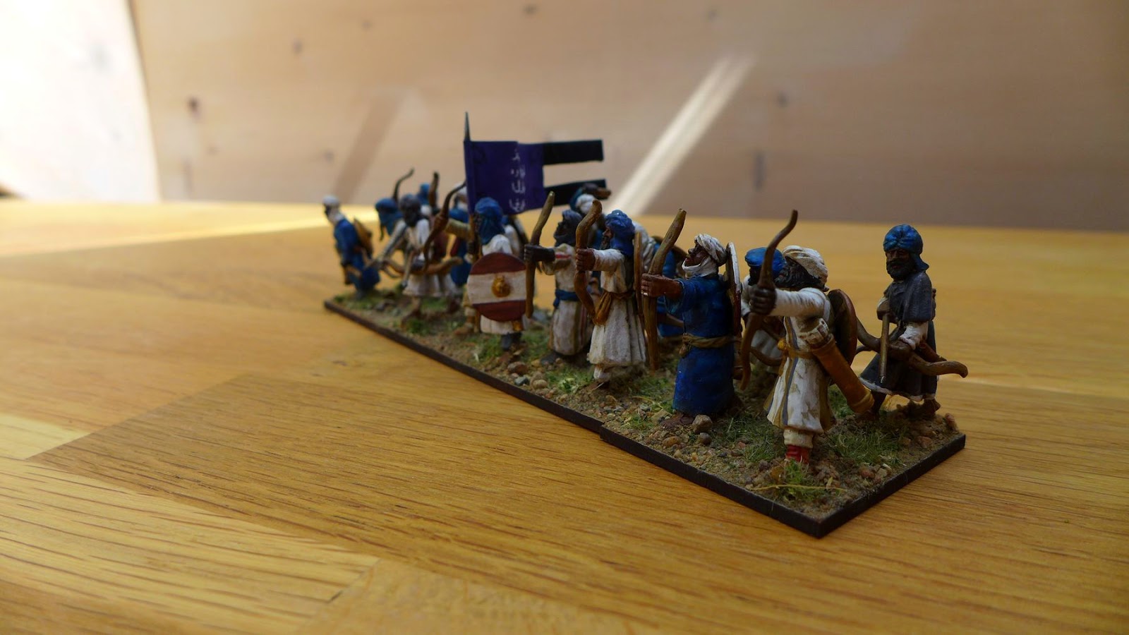 These miniatures are meant to represent a unit of medium archers in the Hail Caesar rules. I have added shields to their back to show that they are a little heavier then there light unit counterpart.
