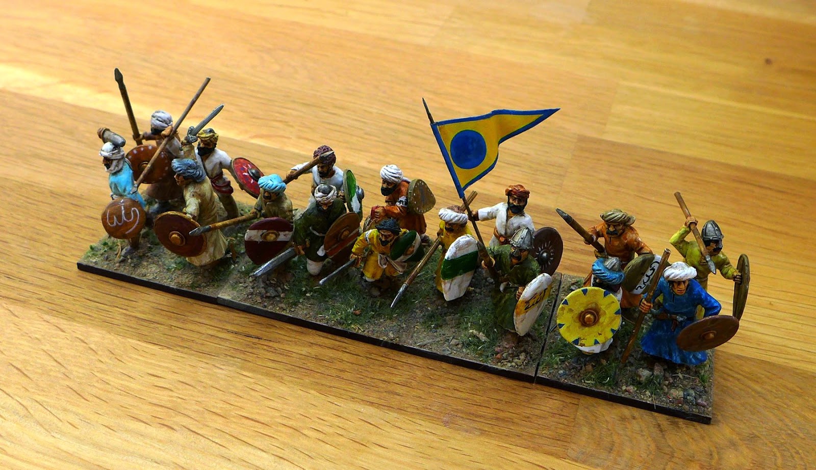 The miniatures are a mixture of Gripping Beast plastic arabs, Perry miniatures and Magister Militum metal miniatures and some Sikh WW2 heads from Warlord Games on some of the plastic miniatures for greater variations.