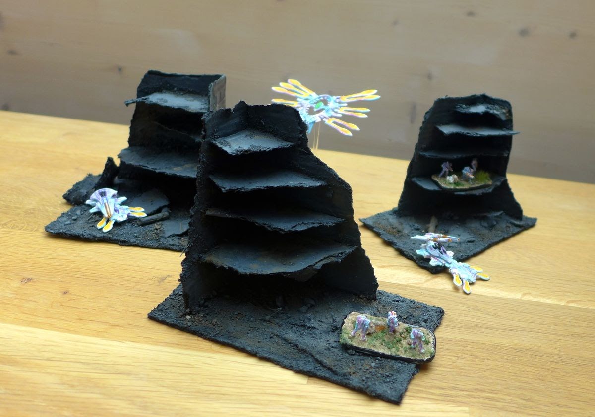 This time I used corrugated cardboard for the walls and after assembled the building, added sand and other basing material. After the zenith light priming paperprints from the DzC terrain was glued on. I hid the edges with more sand and some paint.