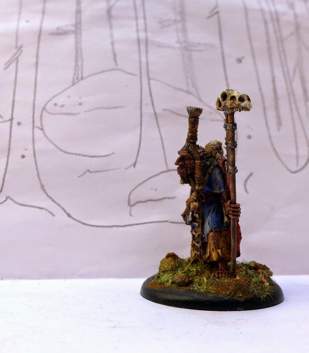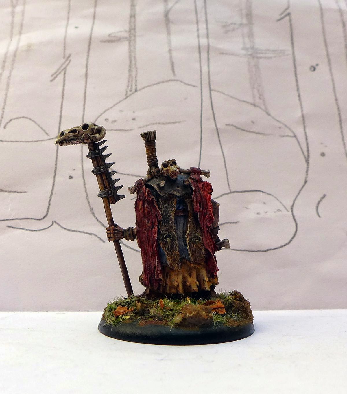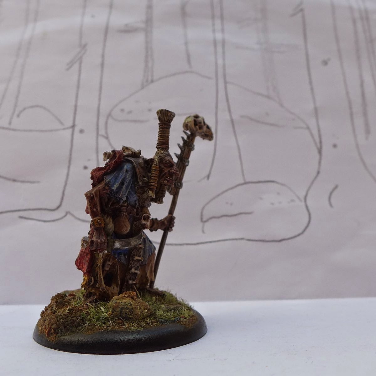 Again, I think your basing is just amazing. I also like that you've kept the painting style very dark and grim, it adds to the Troll feeling. Very cool shaman-like character!