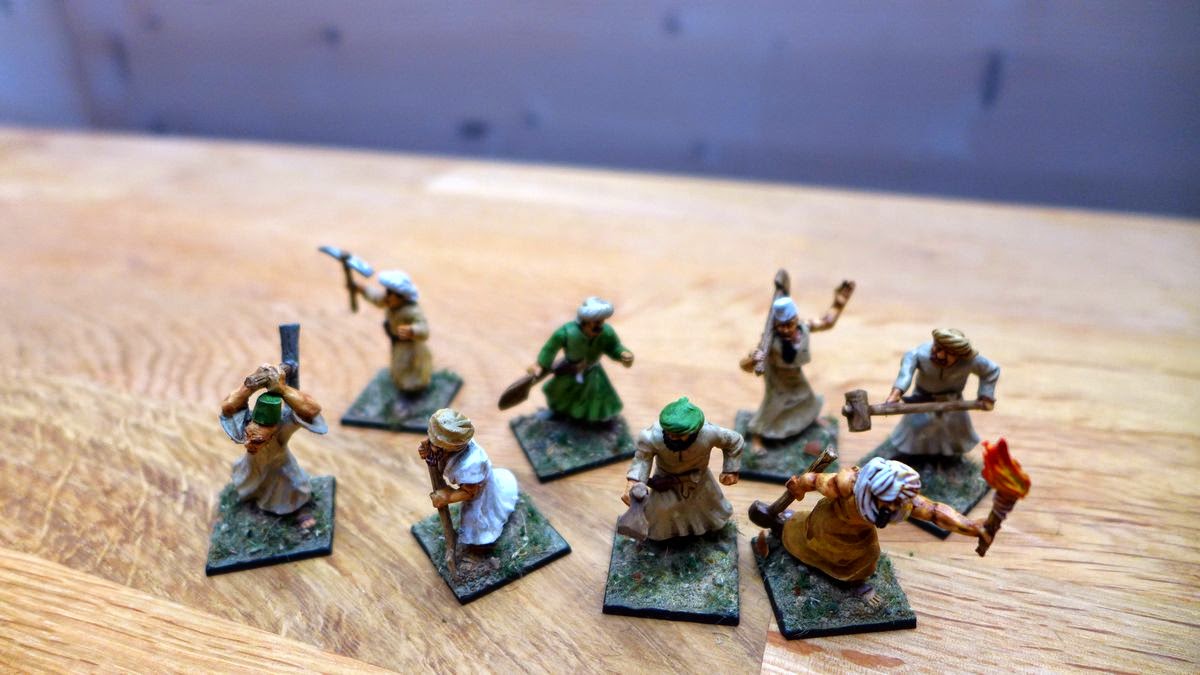 I just finished a small workforce. Im not sure what to use them for yet. If they are meant to be used in sieges, objectives, rabbles to toss into the meat grinder or just as civilian "terrain pieces" to lift the gaming table.