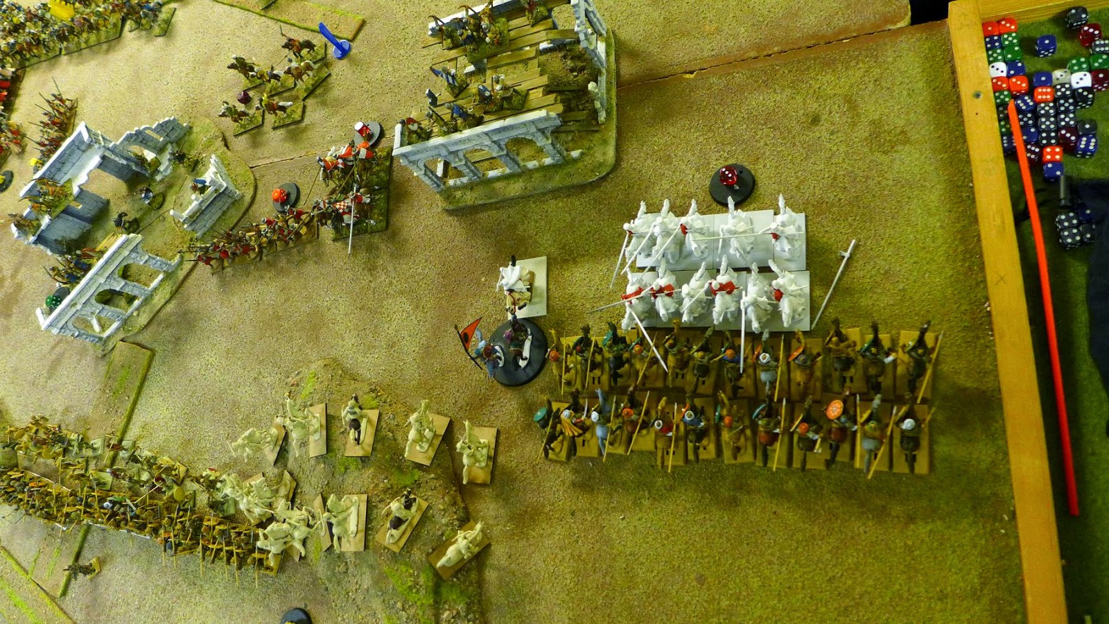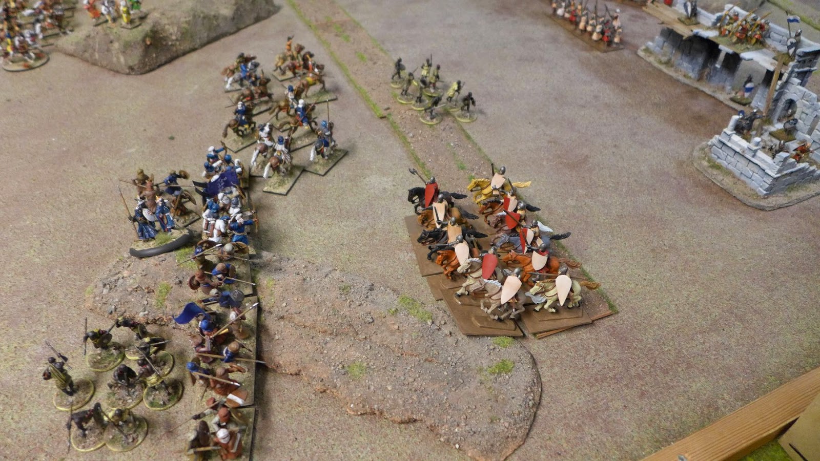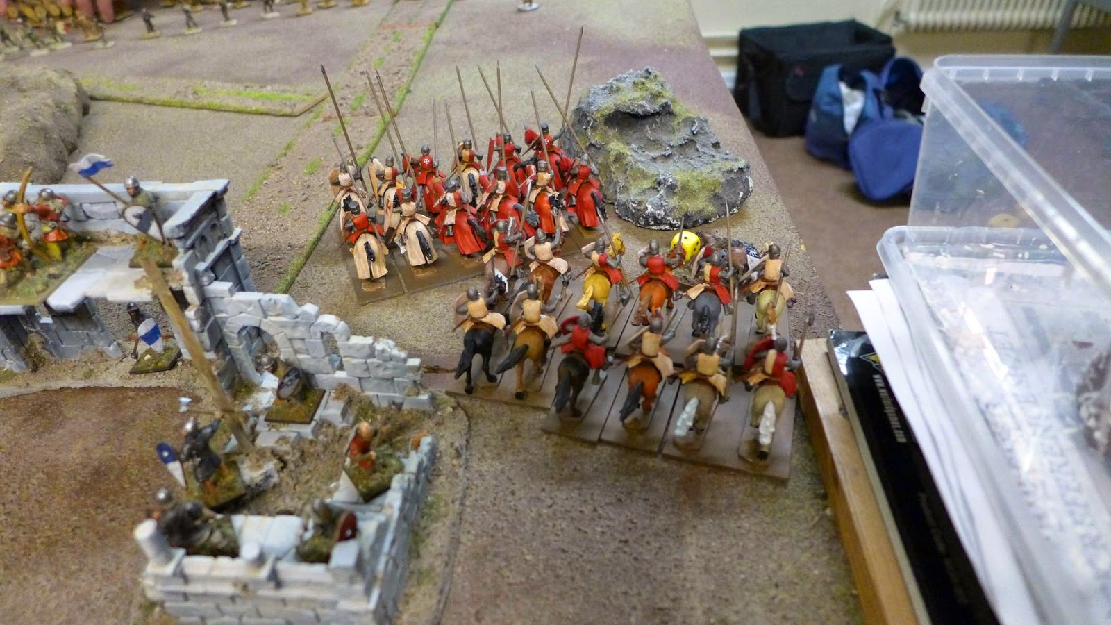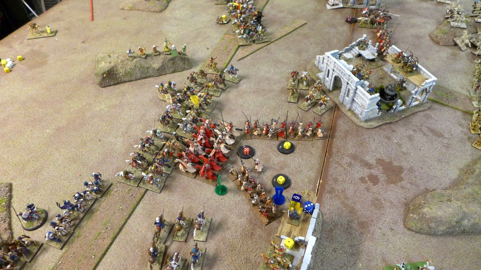 The knight totally crushed the medium cavalry units... The lance rule against medium cavalry makes their moral save 5+ into a 6+, this combined with the good dice rolling of Marco and the bad by Johan resulted in a big hole in the muslim line.