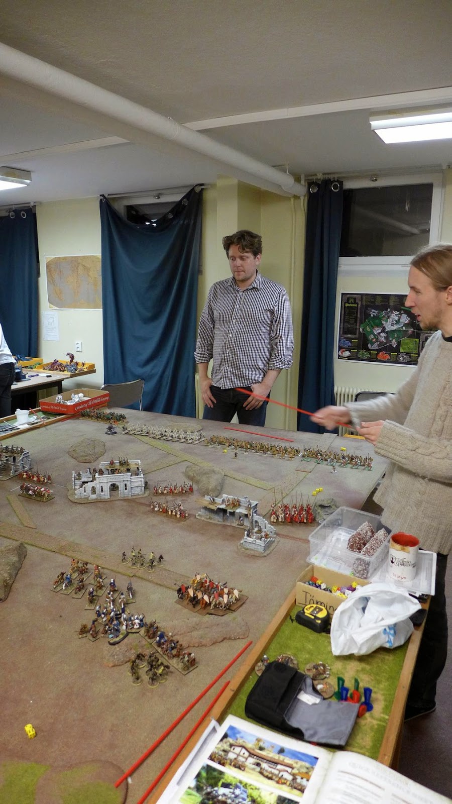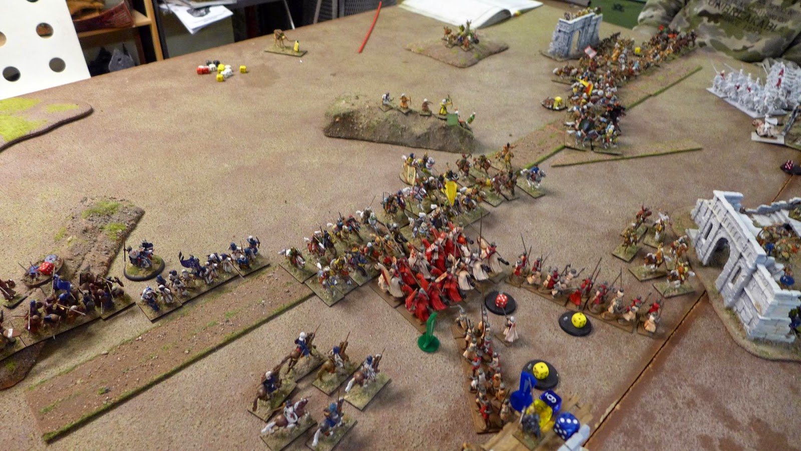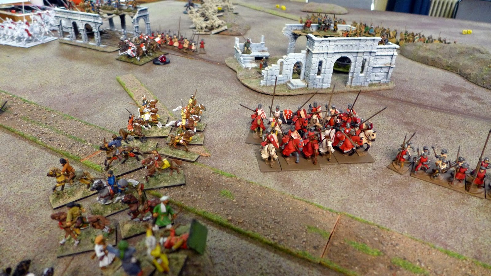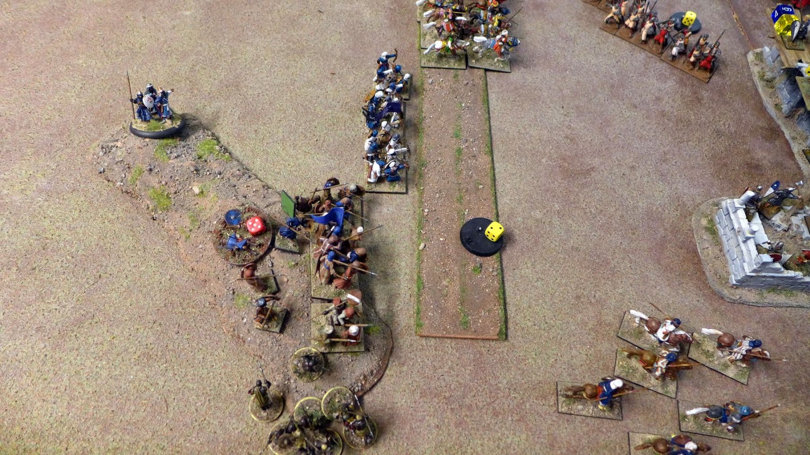 The knight totally crushed the medium cavalry units... The lance rule against medium cavalry makes their moral save 5+ into a 6+, this combined with the good dice rolling of Marco and the bad by Johan resulted in a big hole in the muslim line.