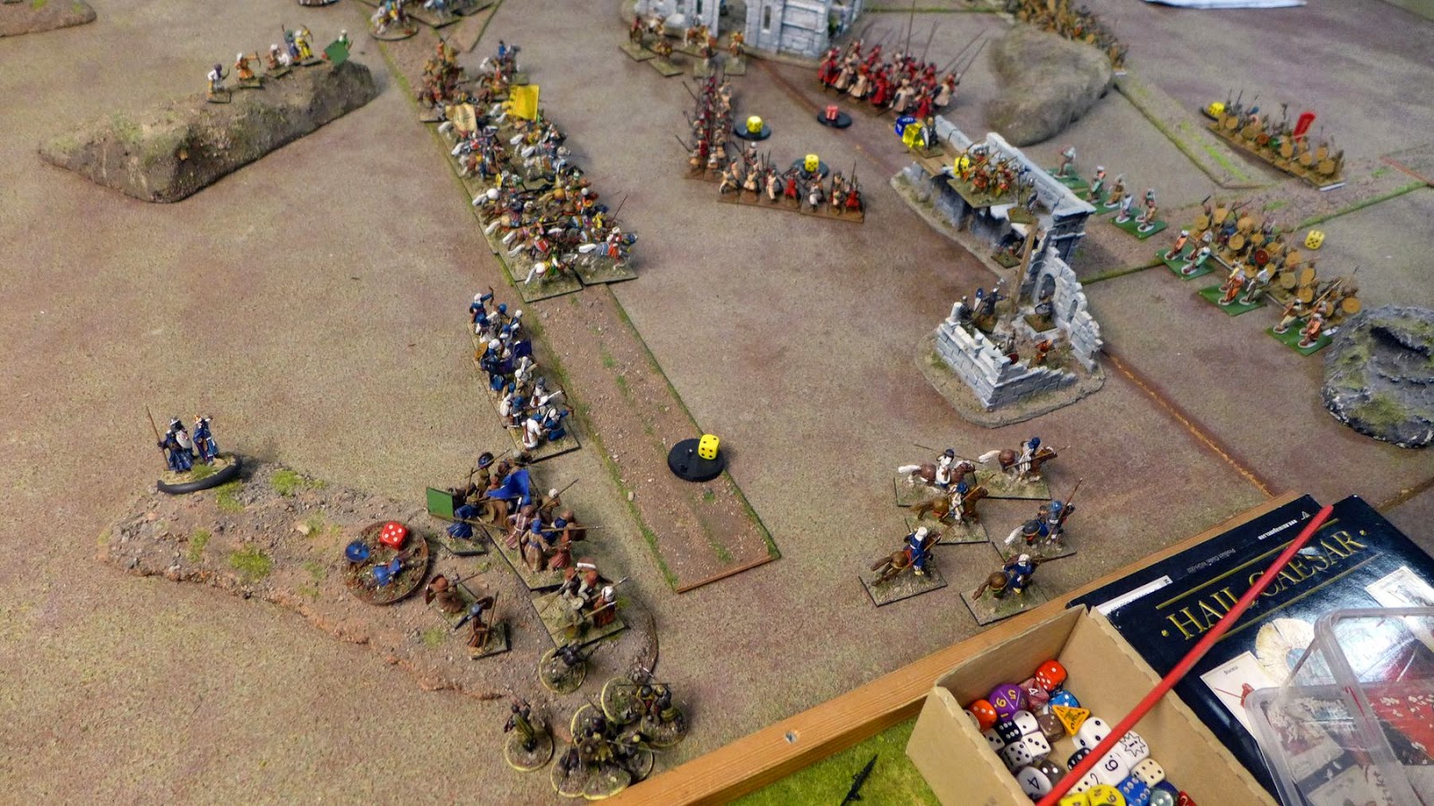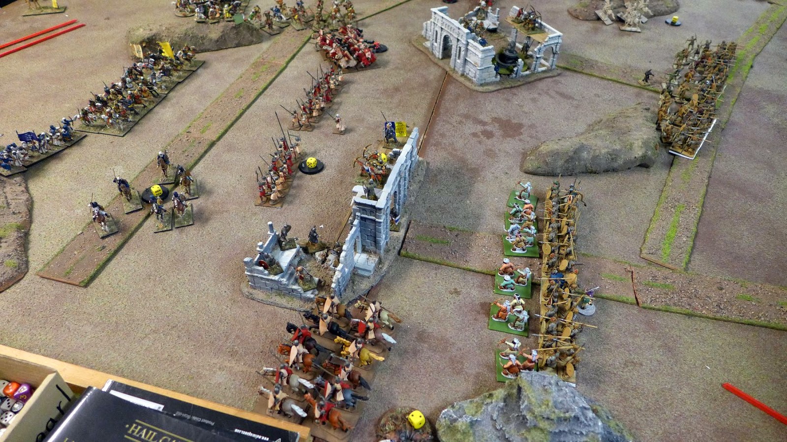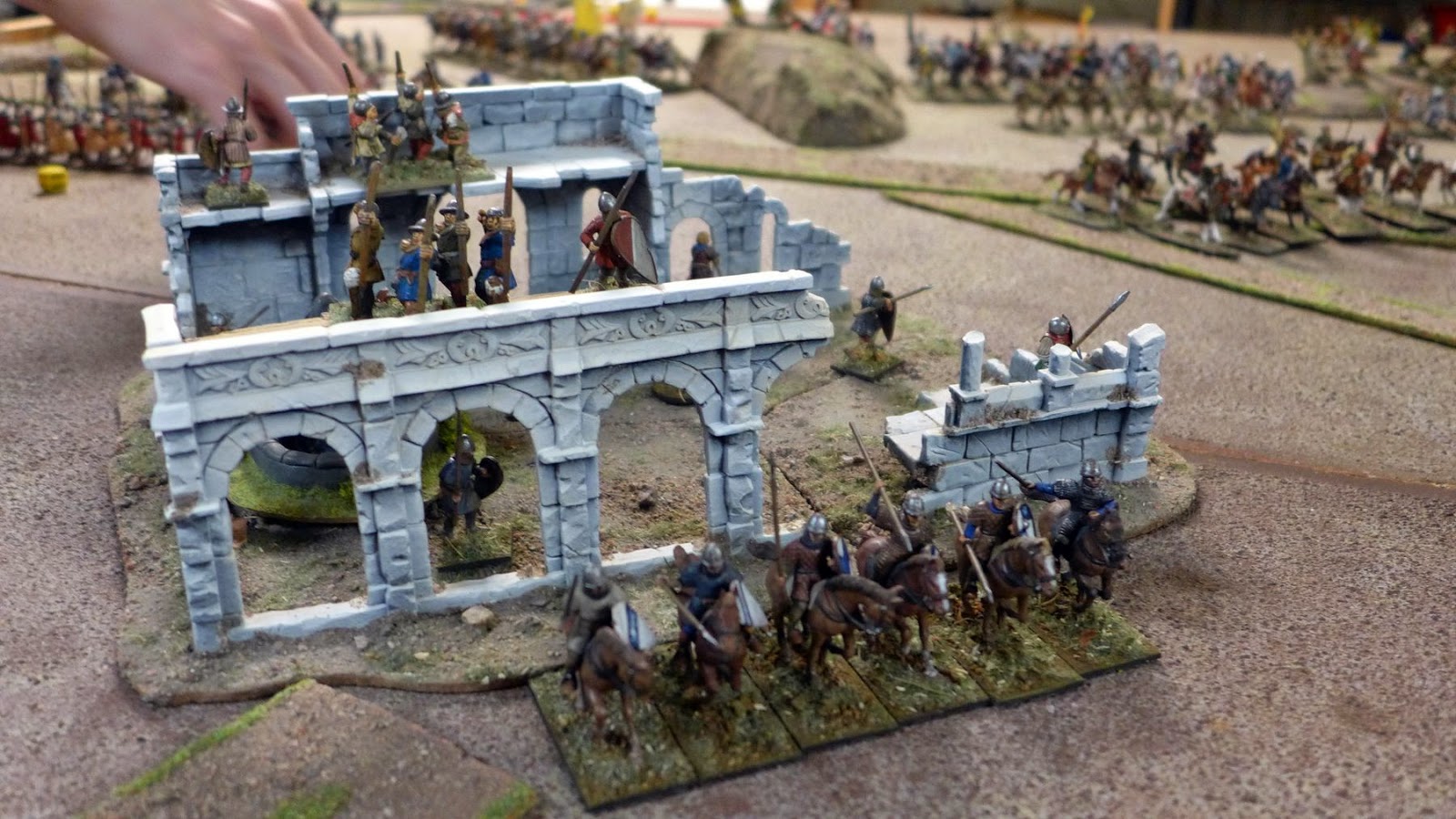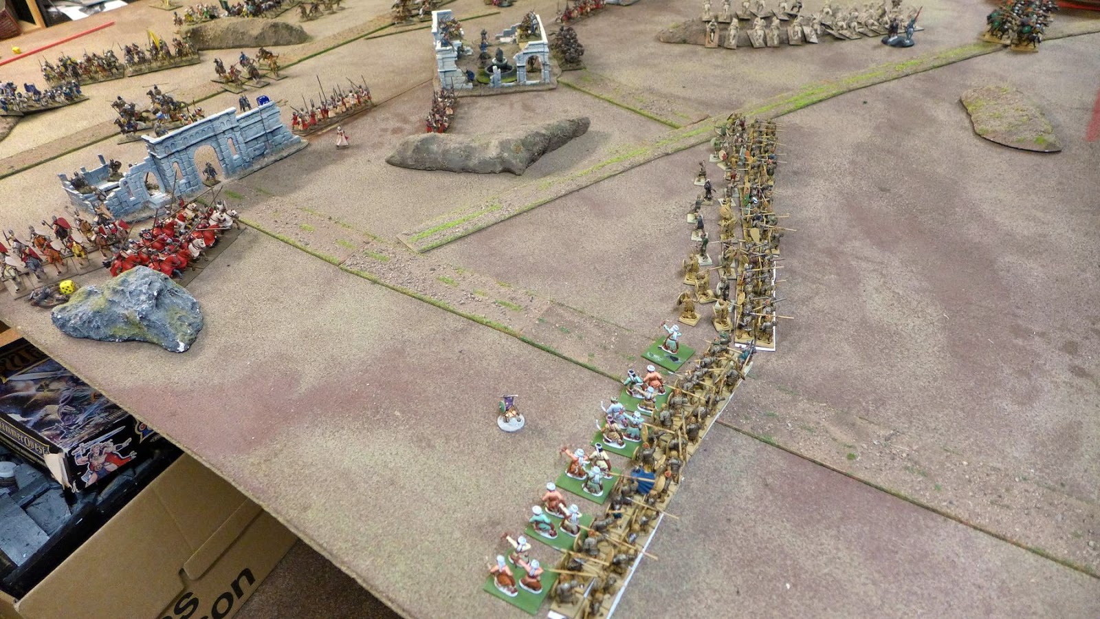 The knight totally crushed the medium cavalry units... The lance rule against medium cavalry makes their moral save 5+ into a 6+, this combined with the good dice rolling of Marco and the bad by Johan resulted in a big hole in the muslim line.