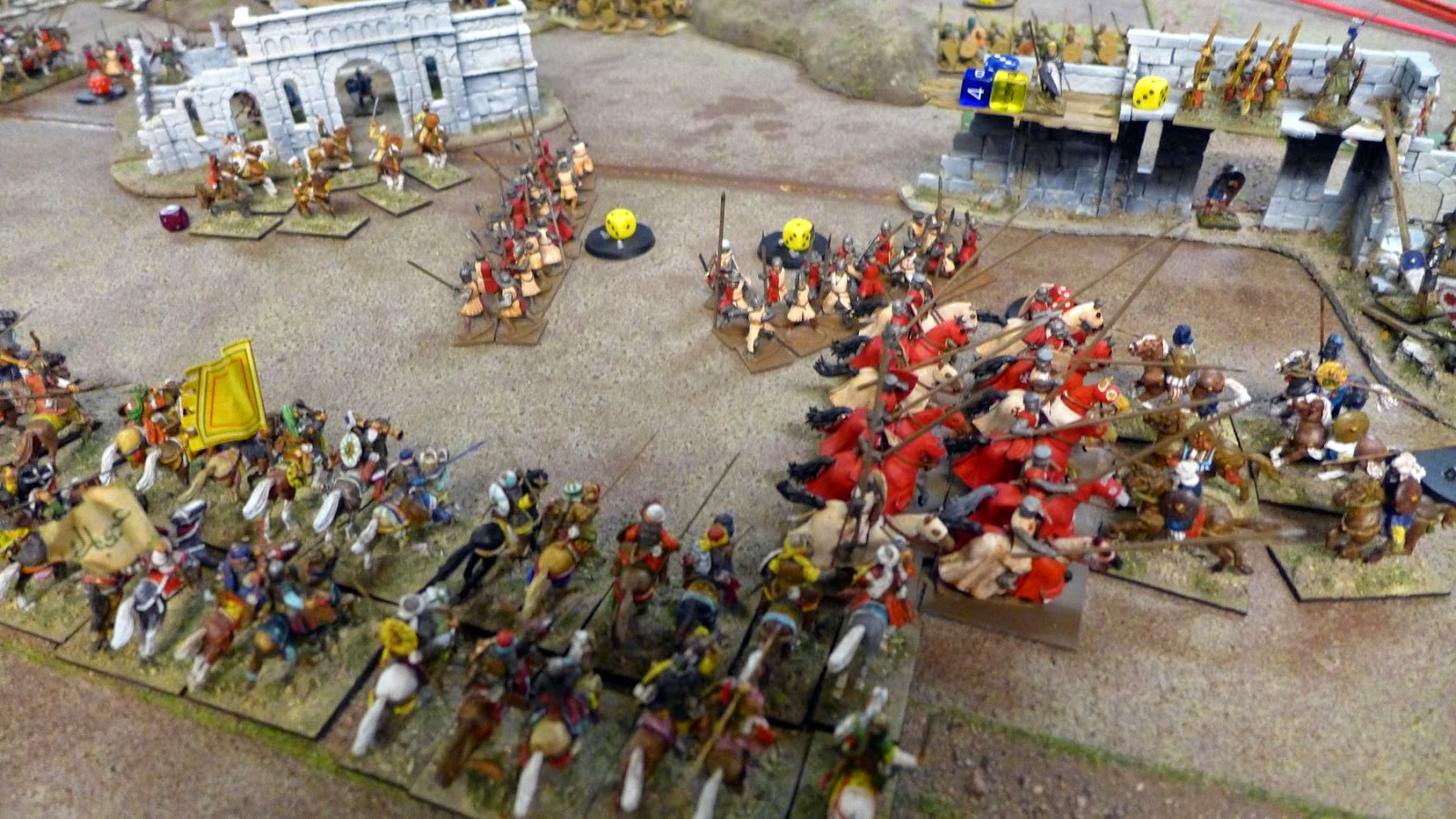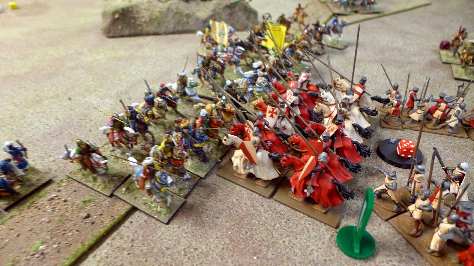 The knights got heavy casualties to and got Shaken but they had at least stopped the muslim cavalry.