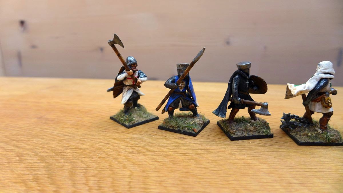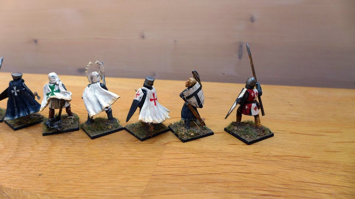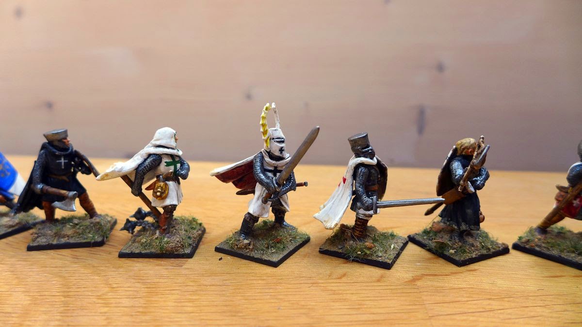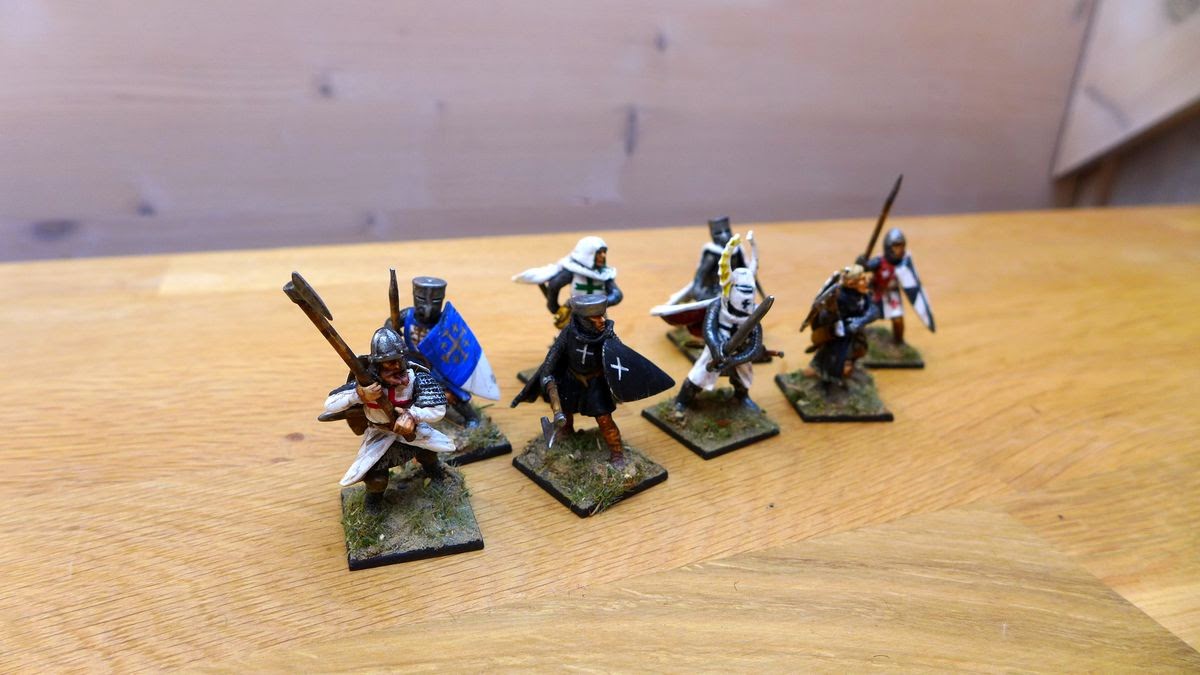This is a group of crusaders, tossed together as a sort of last survivors of a battle. Taking shelter behind each others shields. I plan to have this grouped together in future games as a sort of really elite veteran unit, toughest of the toughest these will kick ass.