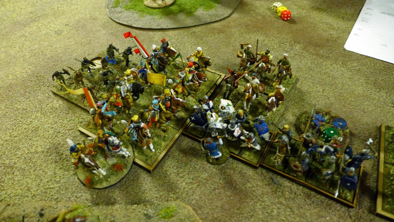Anyhow the result as we played meant after some dicerolls that the Knights of Tripoli was pushed back, one of my Mamluk unit was wiped out and its supporting Turcomans was pushed back with severe casualties.