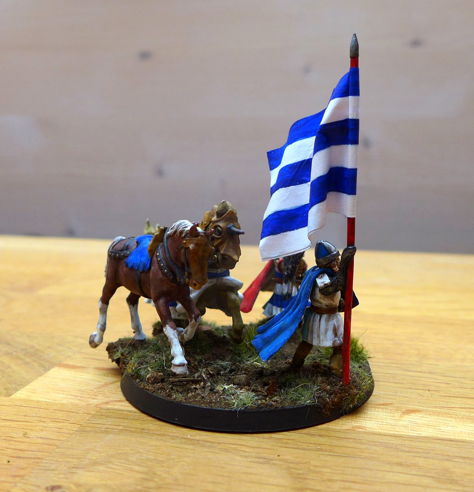 I thought about carving the reins on the horses and giving it to the banner bearer to hold by converting something but I decided that this is probably just a thing people would notice if they really looked closer on the models, not a thing people would think about on the gaming table.