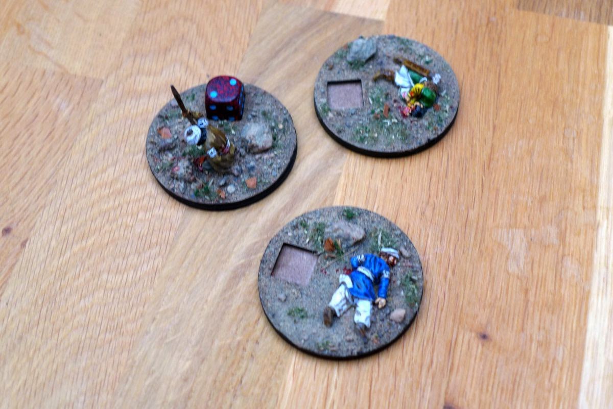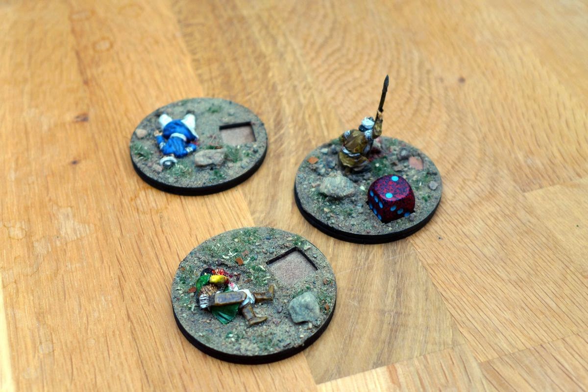 Crafty solution for a casualty marker and nice painting on the minis! Now all that's left is to send your men forward, and hopefully get some hits :0)