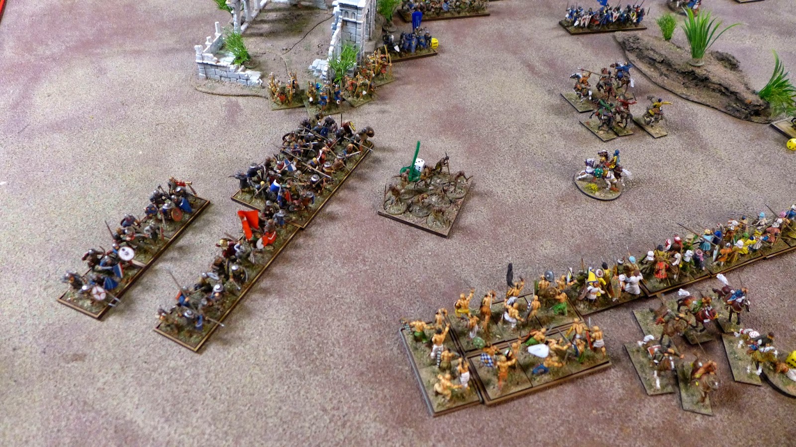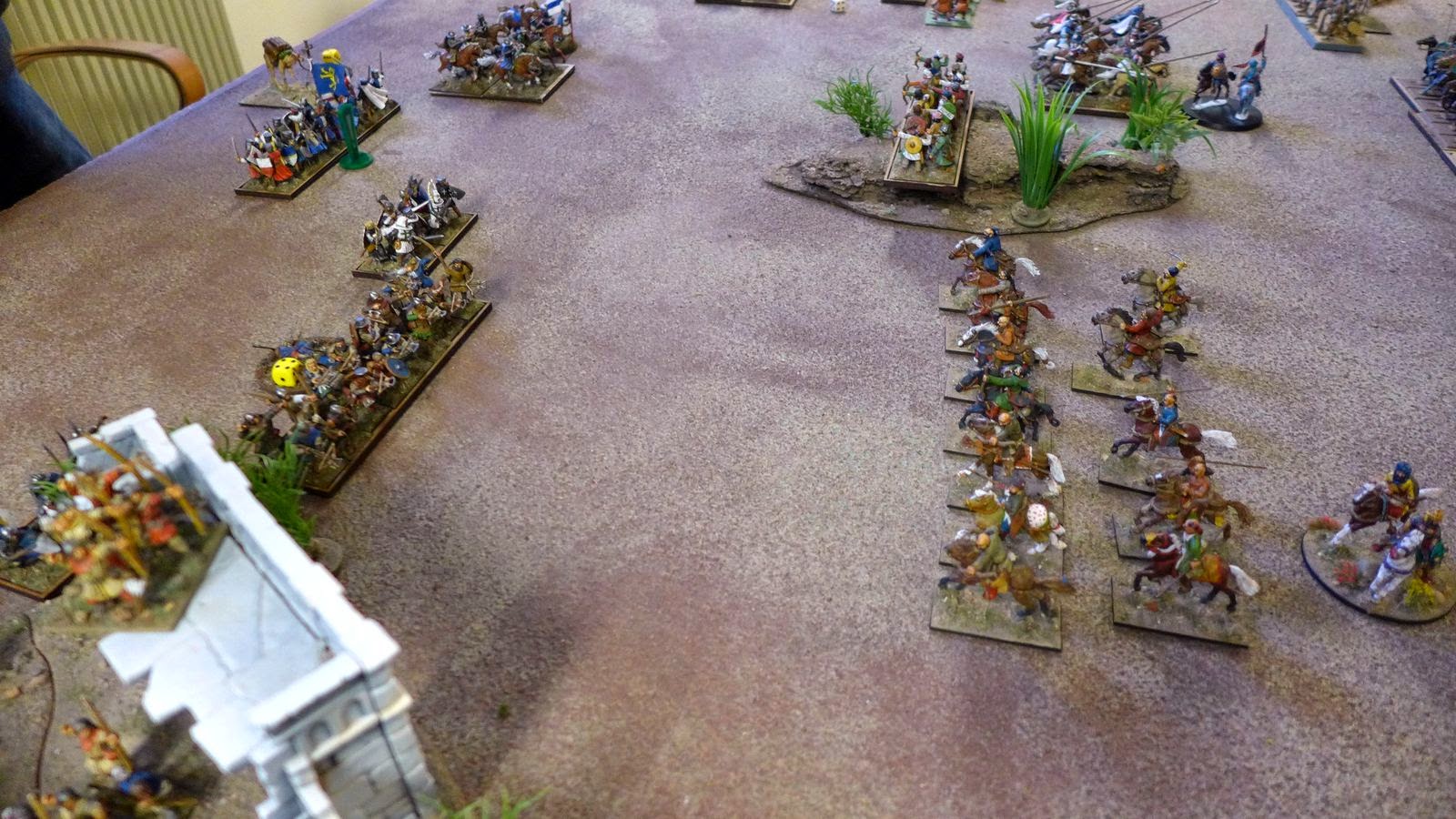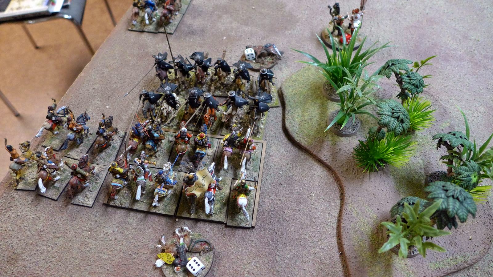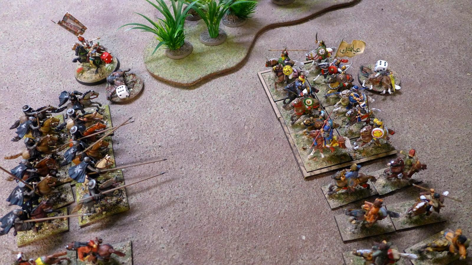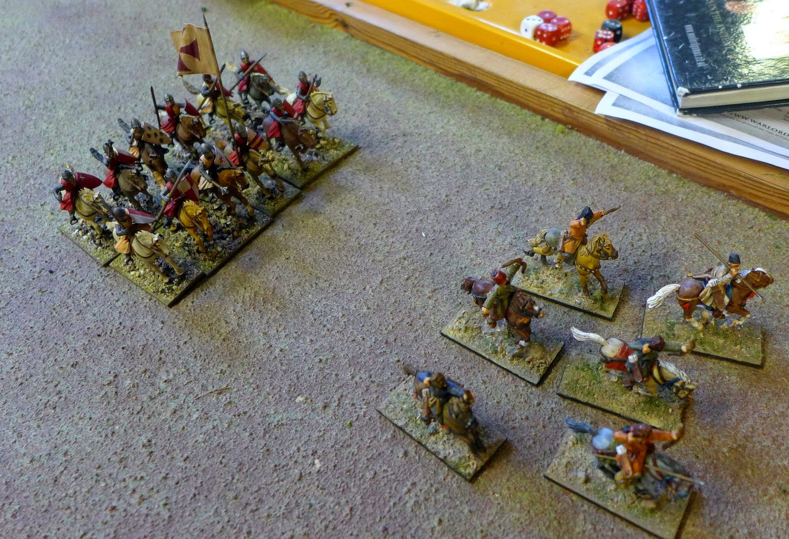 On the flank with the heavy cavalry a small unit of mounted archers approached the up most flank. After some irritation the knights had enough and stormed after them and chased them to their own lines. The rest of the cavalry rode steadily forward and heard that clashes was soon to follow in the centre and on the flank.