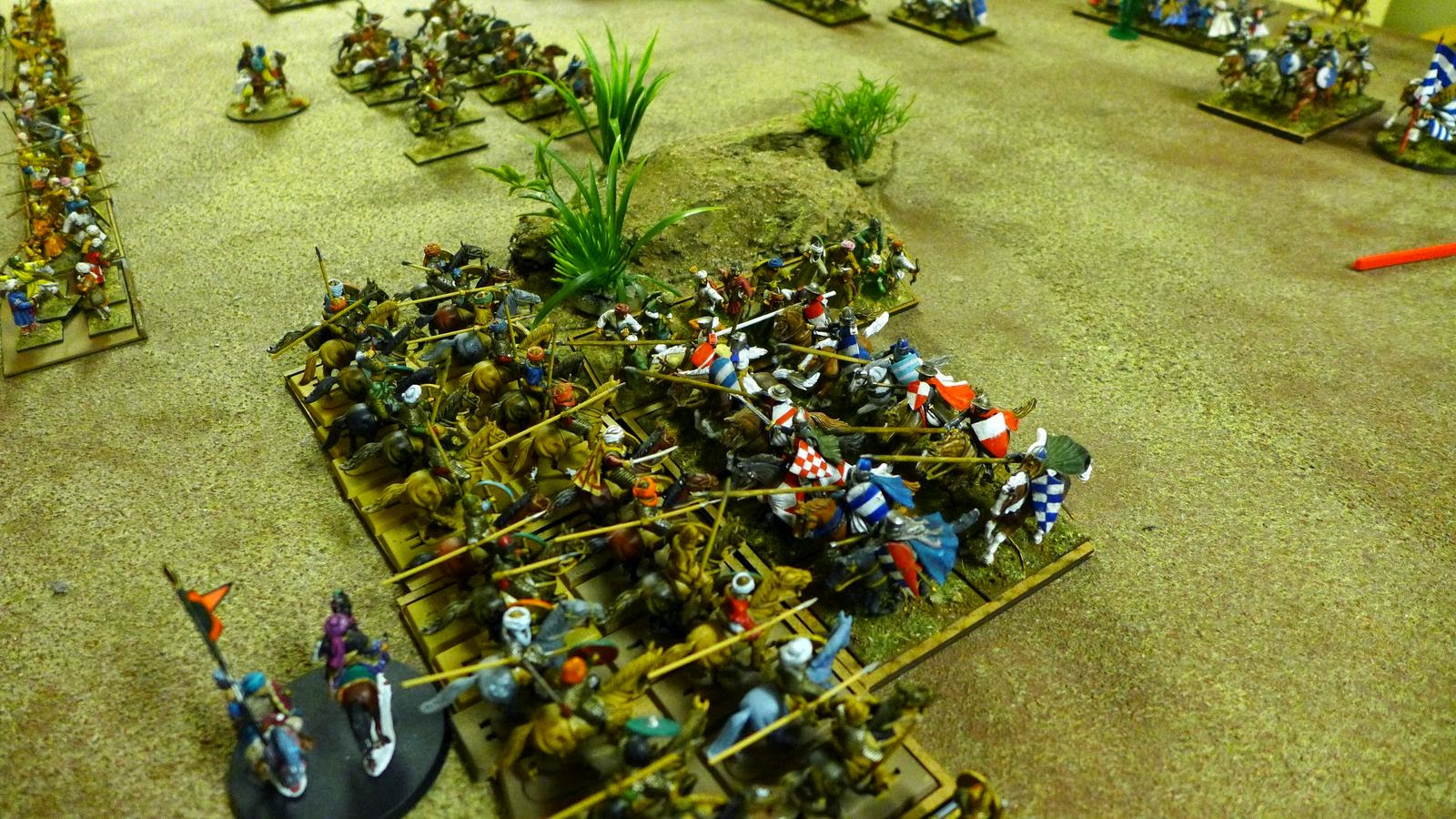 The knights inflicted heavy casualties in their flank but it was not enough to turn the flank around and hit the enemy in the centre from the side.
