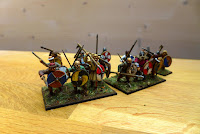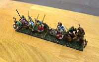 And I opened up my closet of hobby related things and found a half painted unit of Norse Bondi troops. Perfect.