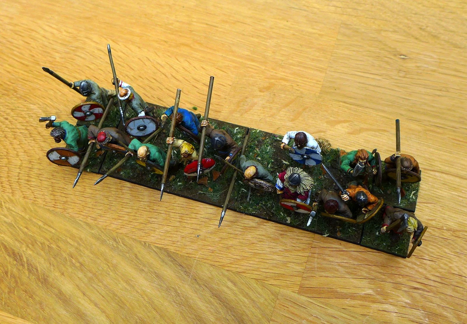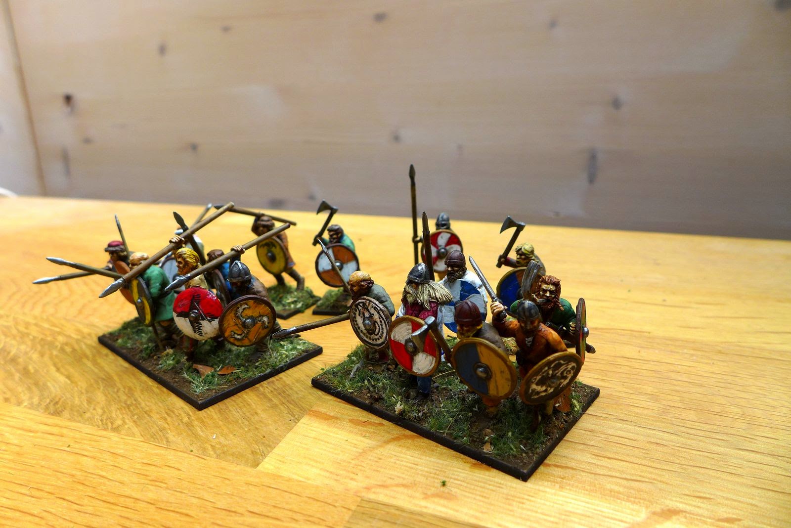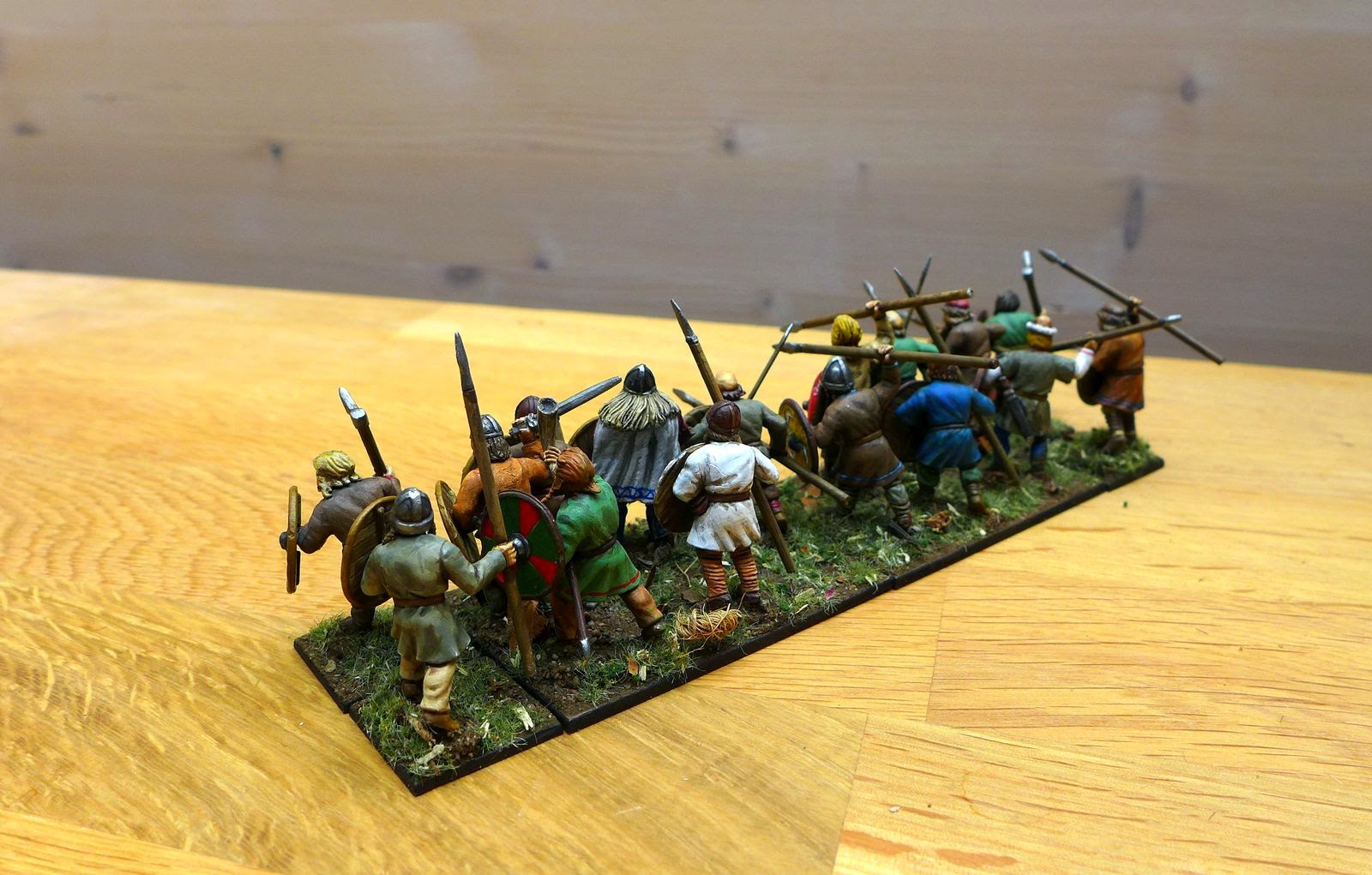 The miniatures are a mixture but the main mass of miniatures comes from Gripping Beast plastic Dark age warrior box. With some head swap from their Hirdmen box you get a nice Norse feeling to them and even better to throw in a metal miniature here and their for that added level of variation that make a unit look even more interesting.