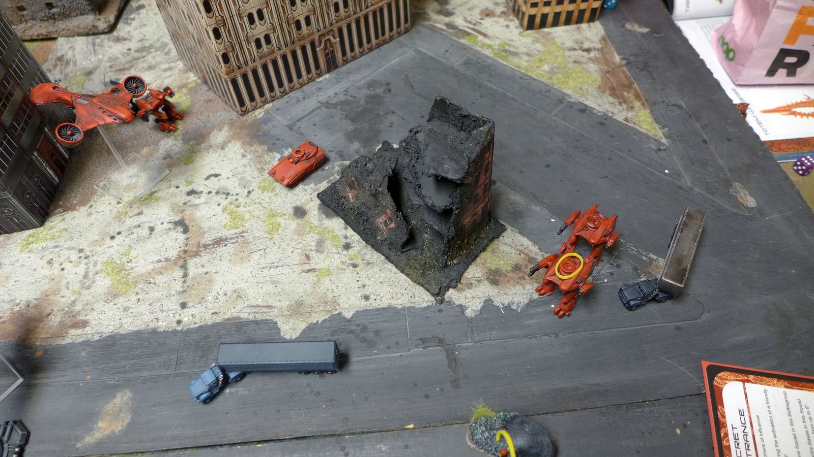 That could have turned out so much better with enemy hacking my gun systems forcing me to hit my own miniatures loosing a shot and when you least want it you always roll that one...