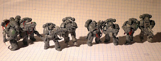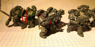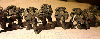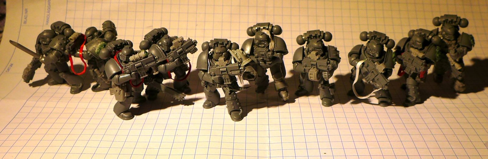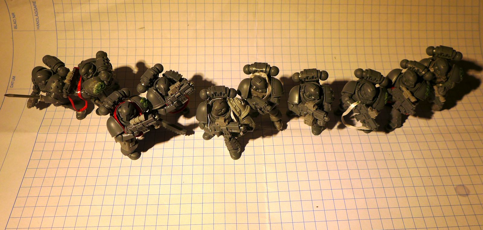 Here are some work in progress pictures of my tactical squad, the base marines are from the Betrayal at Calth box with some added kit from Anvil Industry and some small things from other sources.
