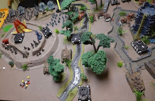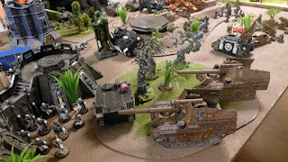 Our left flanks looks much better... My Death Korps have secured the objectives and the points are ticking in as the Sisters and the Blood Angels presses forward.