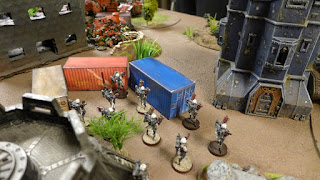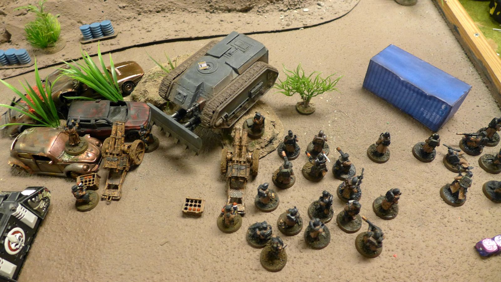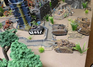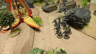 The Sisters leads the way and the Death Korps makes their vehicles take fire positions.