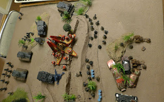 The Orks call in reserves that hit us in the flank, heavy flames equipped light vehicles that did alot of damage.