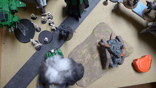 The rampaging Dreadnought charged our Leman Russ tank and even with only one hit in close combat it managed to take it out.