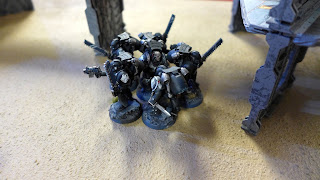 My commander carrying an objective as the tacticals fires their boltguns on the Raven Guards.