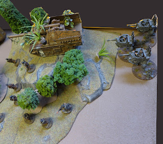Death Korps moves out after the victory with the Genestealers.