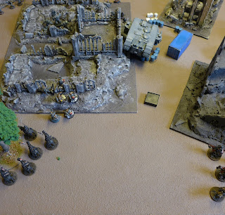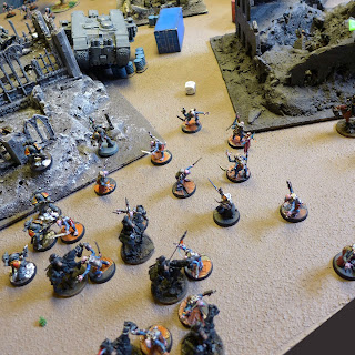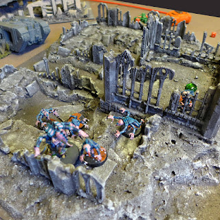 In another ruin the combat is looking much better with Space Wolves bashing the militias.