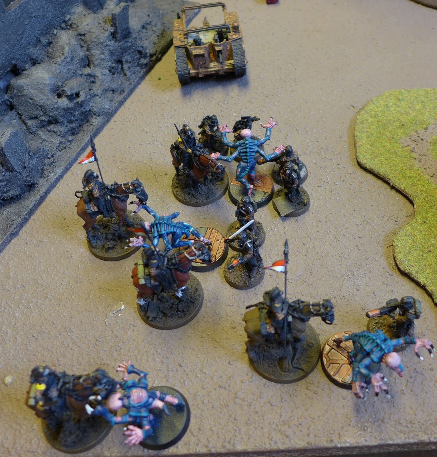 A combined charge of Death Riders, my two last Engineers and a platoon command team meant the end of the Genestealers.