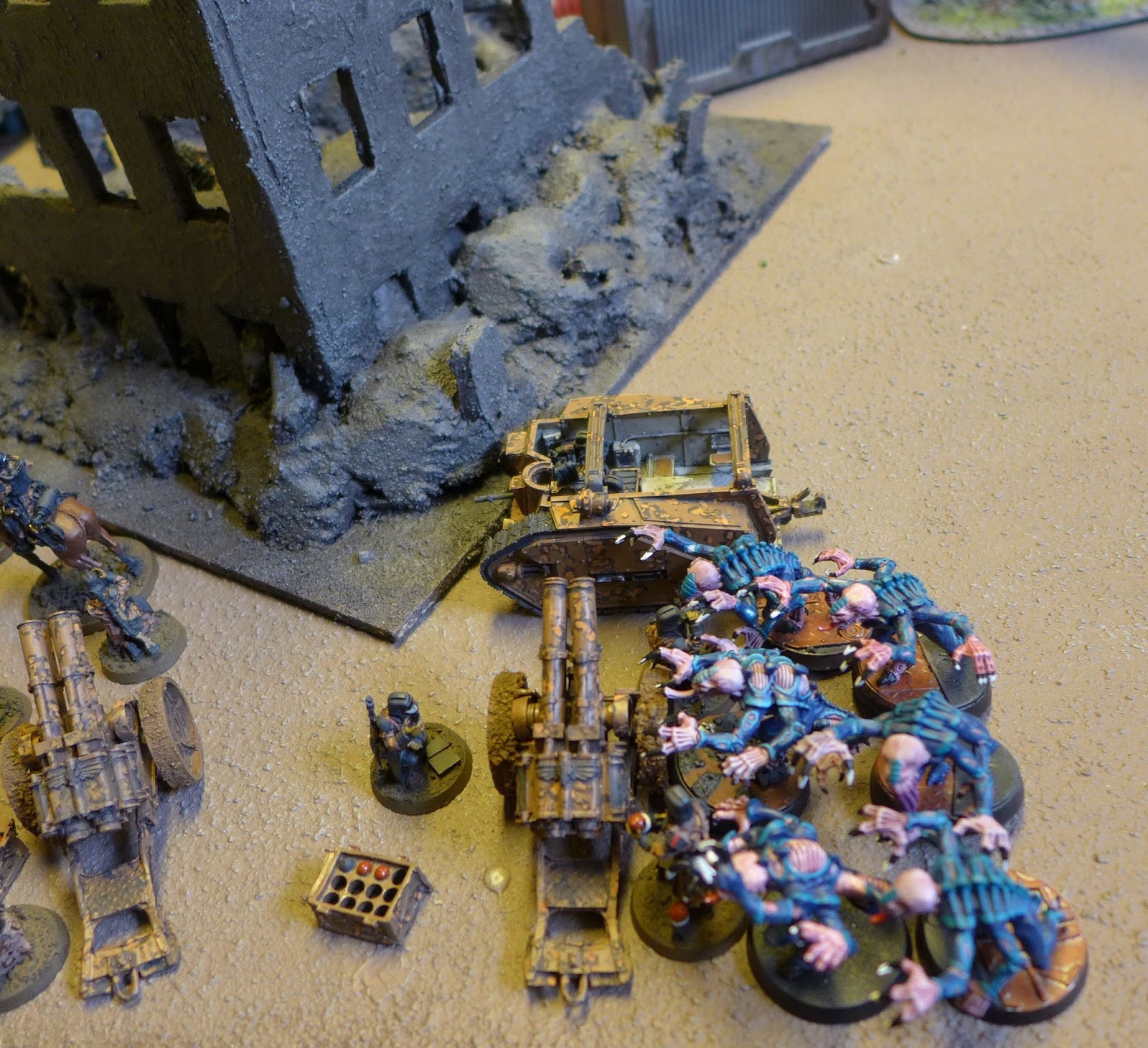 Out of nowhere a unit of Genestealers ambushes and assaults my light artillery.