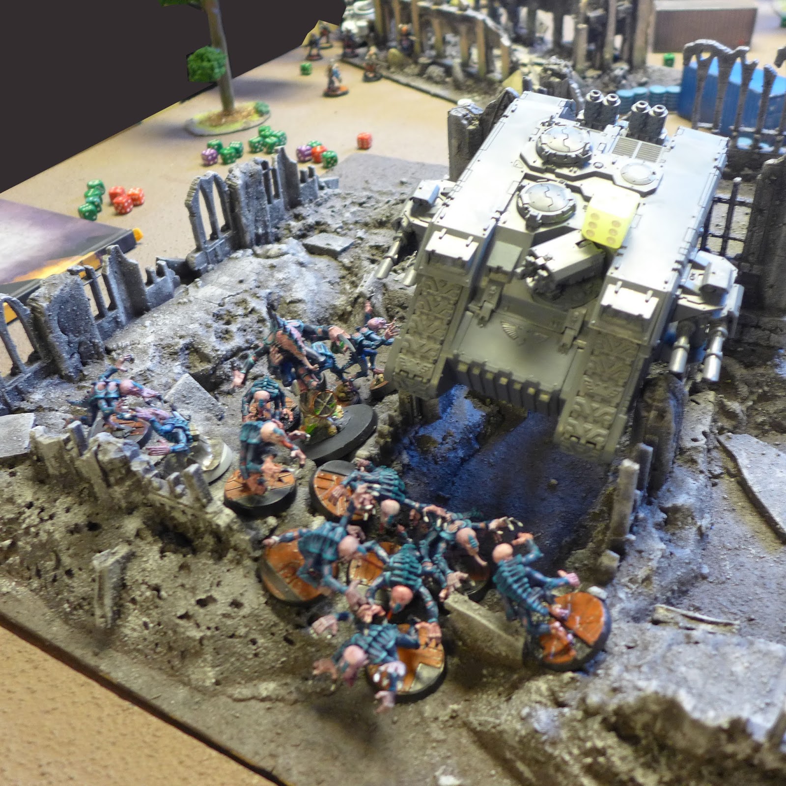 My Macharius had tried to inflict casualties on a huge unit of Genestealers and their HQ variant but I scattered to far with the main gun and my other weapons didnt fare better.