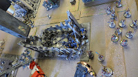 In the end my positions where totally overwhelmed but my axe Veletaris hid at the edge of the table securing me 2 of the objectives resulting in a draw. I took heaps of casualties and I lost control of the other 2 objectives in the last turn as my last two Velearis with Volkites where taken out by the big blob of Marines. Had they survived that last round it would have been a Loyalist win instead.