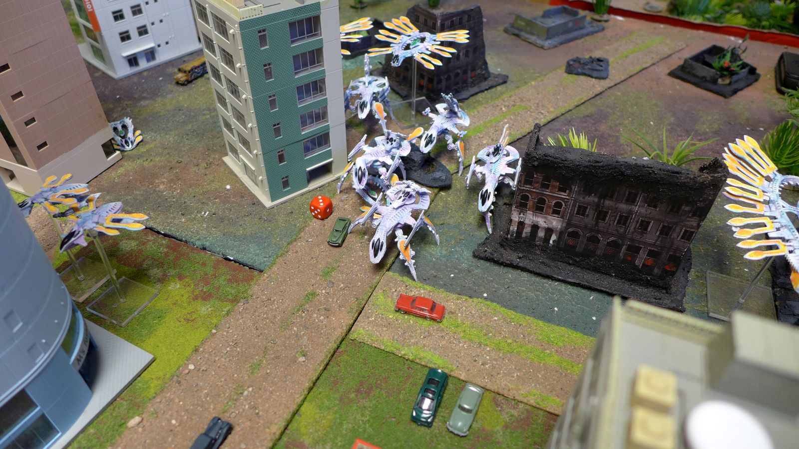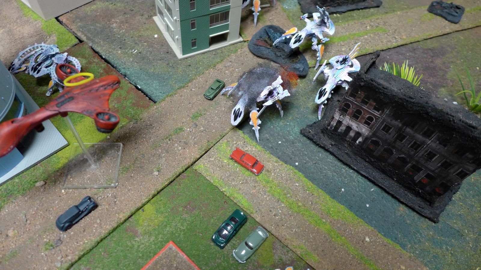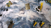 We got a little more brushes of paint on the miniatures since last game and we managed to read some more in the rulebook which did speed up the game.