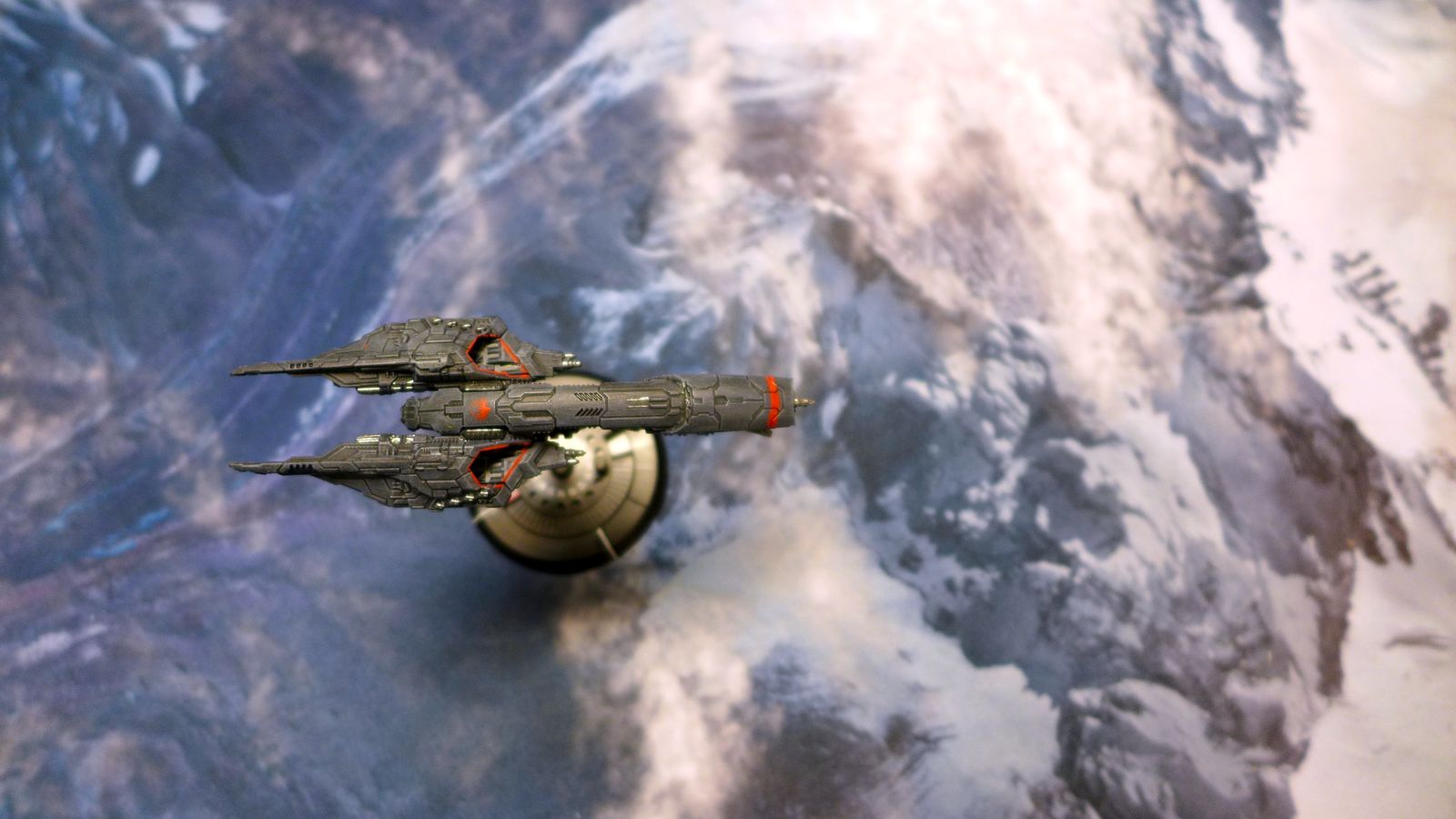 A closer look at my Seattle class carrier, its still work in progress but the "Battlestar Galactica" symbol can be seen. :)