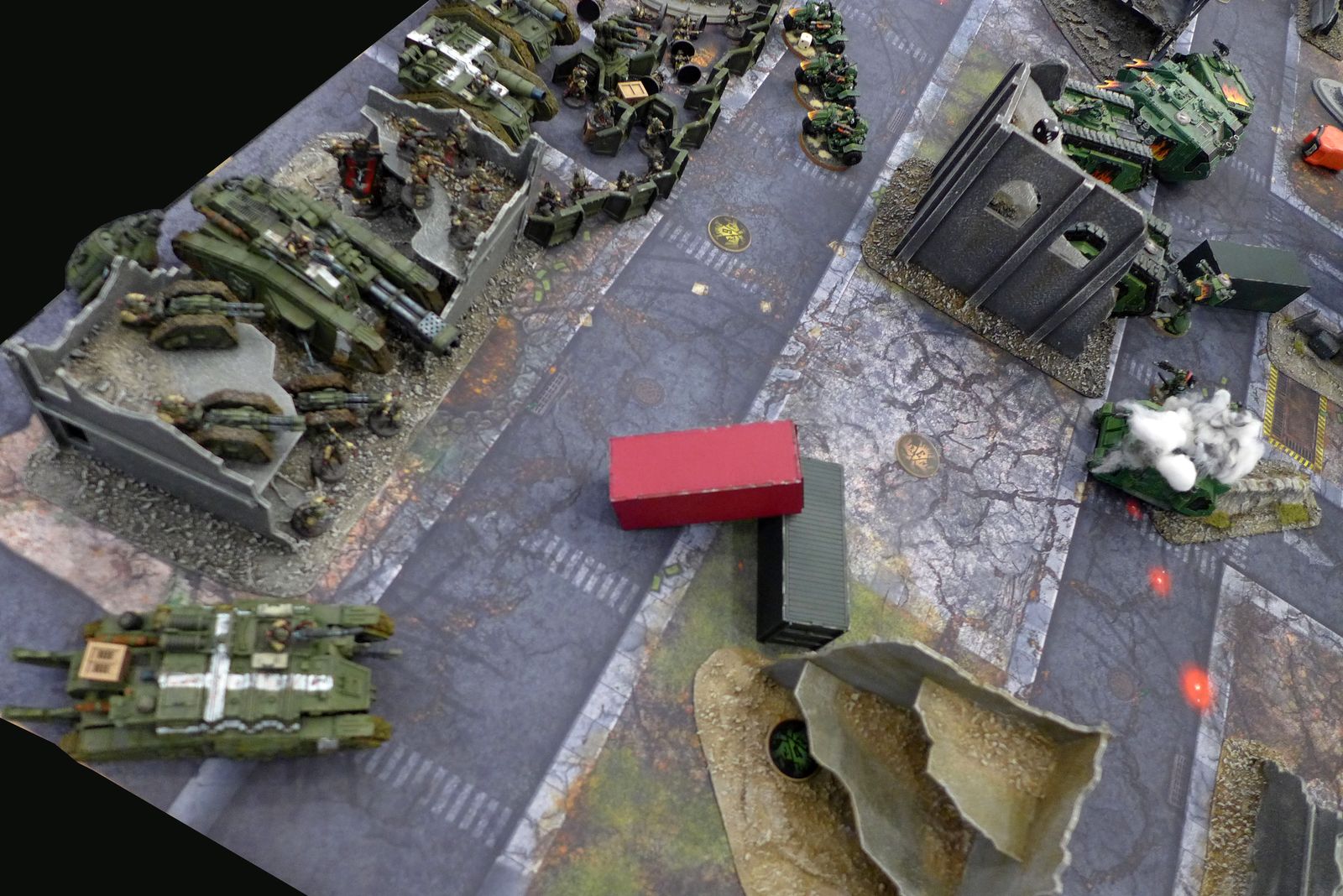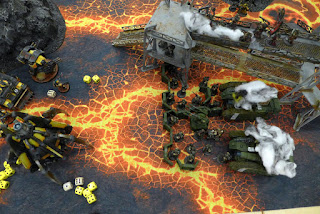 My one surprise that I managed to pull of was to sneak up my Malcador Infernus and wipe out 9 lascannon dudes in one round, but that was about all it managed before it was destroyed.