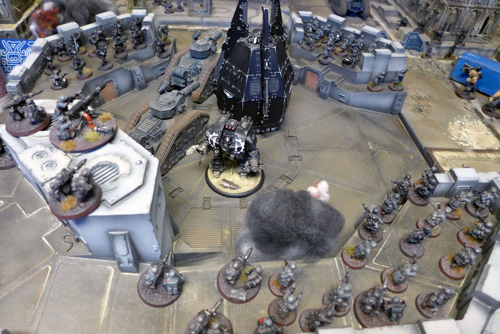 In total it was about 24’500 points on the defending traitor force and about 27’000 on the attacking Loyalist force on the Megabattle