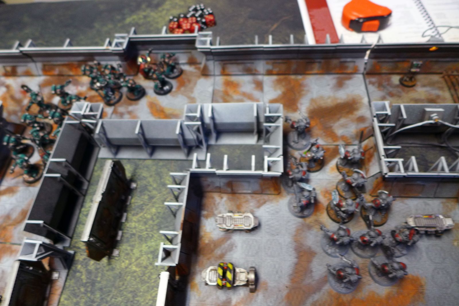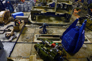 (rulewise it was decided that some of the gaming table was blocked from entering with vehicles with hullpoints greater then 3 in an attempt to keep the bigger things to one side and more infantry based force on the other, but it meant that I had to spread out my force more then to my liking as most of my vehicles have more and I really needed an infantry force against the objective with the big door currently hold by Natailia...)