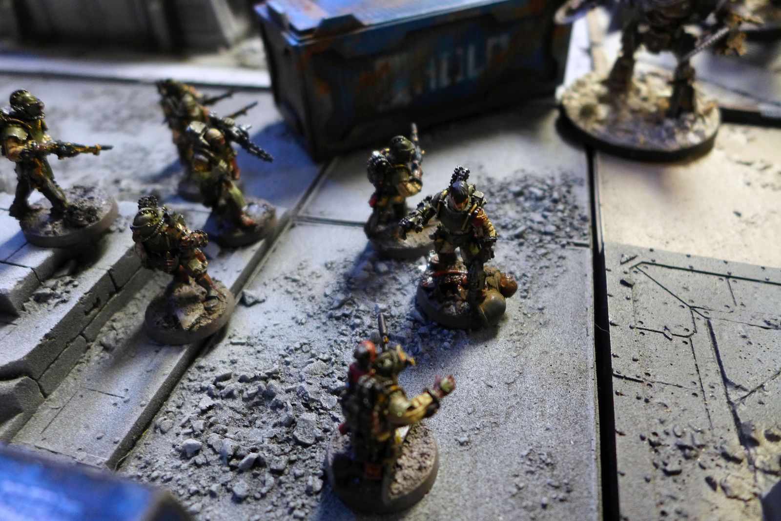 Iron Hands assault marines taking cover in some ruins awaiting possibly enemy counter-attacks.